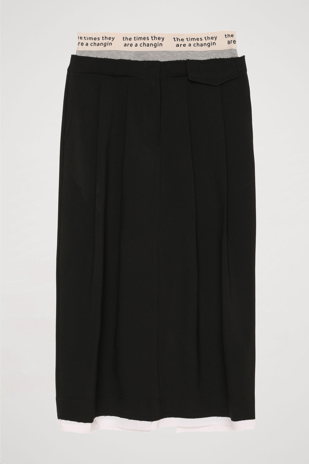 Bel kısmında yazı lastik detaytlı, paçası kumaş matchlı, fermuar kapamalı, midi etek.