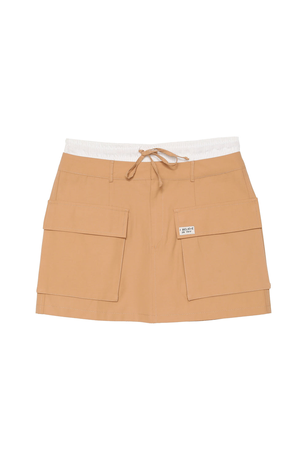 Beli boxer detaylı, büyük cep detaya sahip etek.