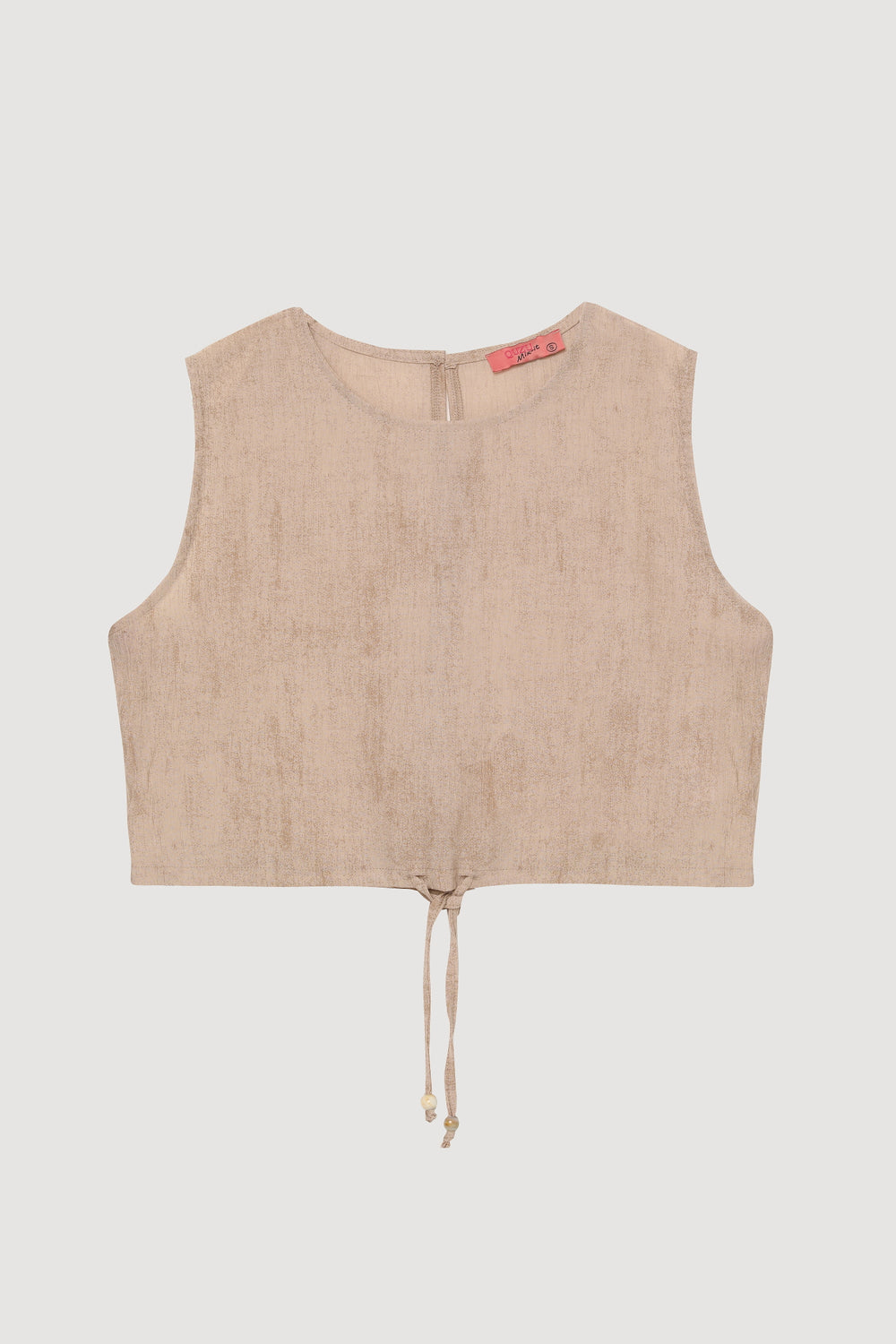 Büzgü Detaylı Bağcıklı Kolsuz Bluz Bej