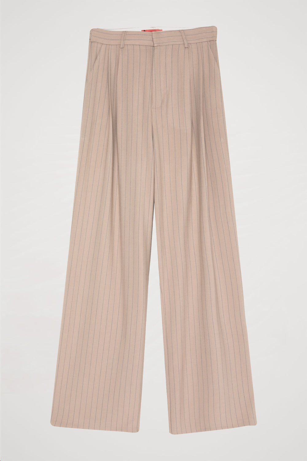 Çift Pileli Çizgili Palazzo Pantolon Bej