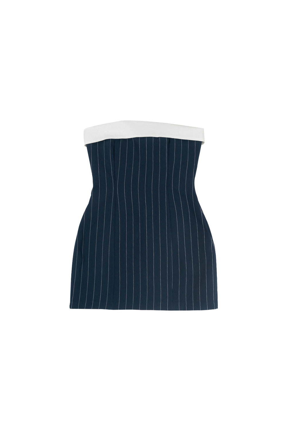 Pinstripe mini dress with sprazle detail, concealed zip fastening on the back
