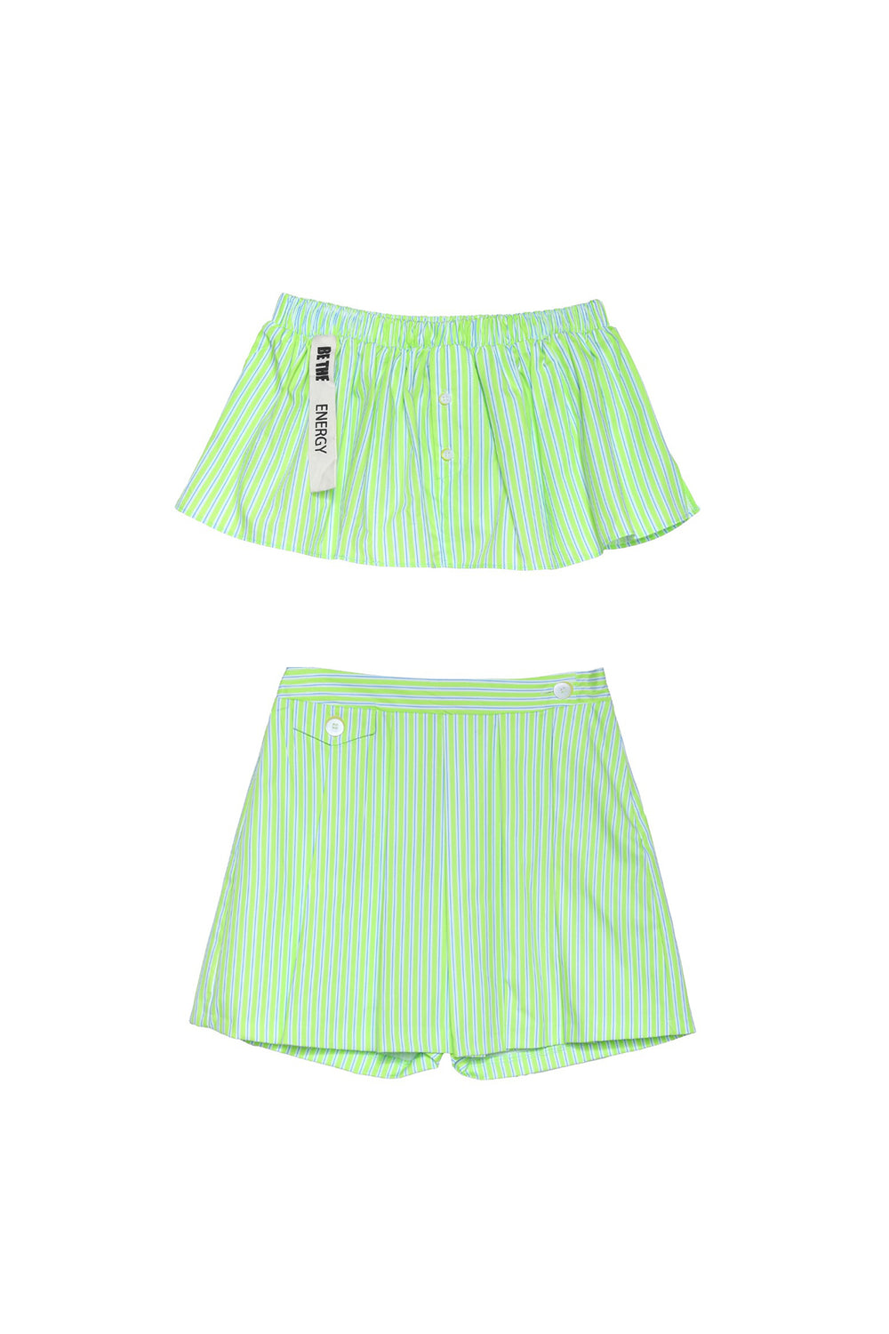 Çizgi Detaylı Şort Etekli Bluz Takım Yeşil