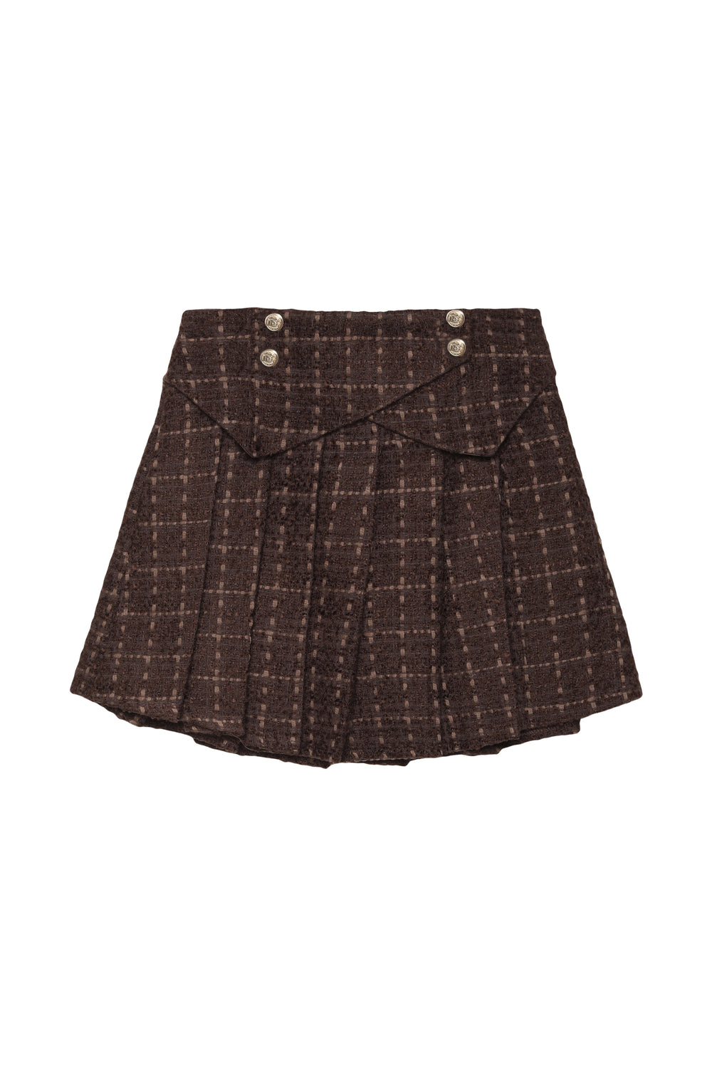 Düğme Aksesuarlı Pileli Mini Etek Kahverengi