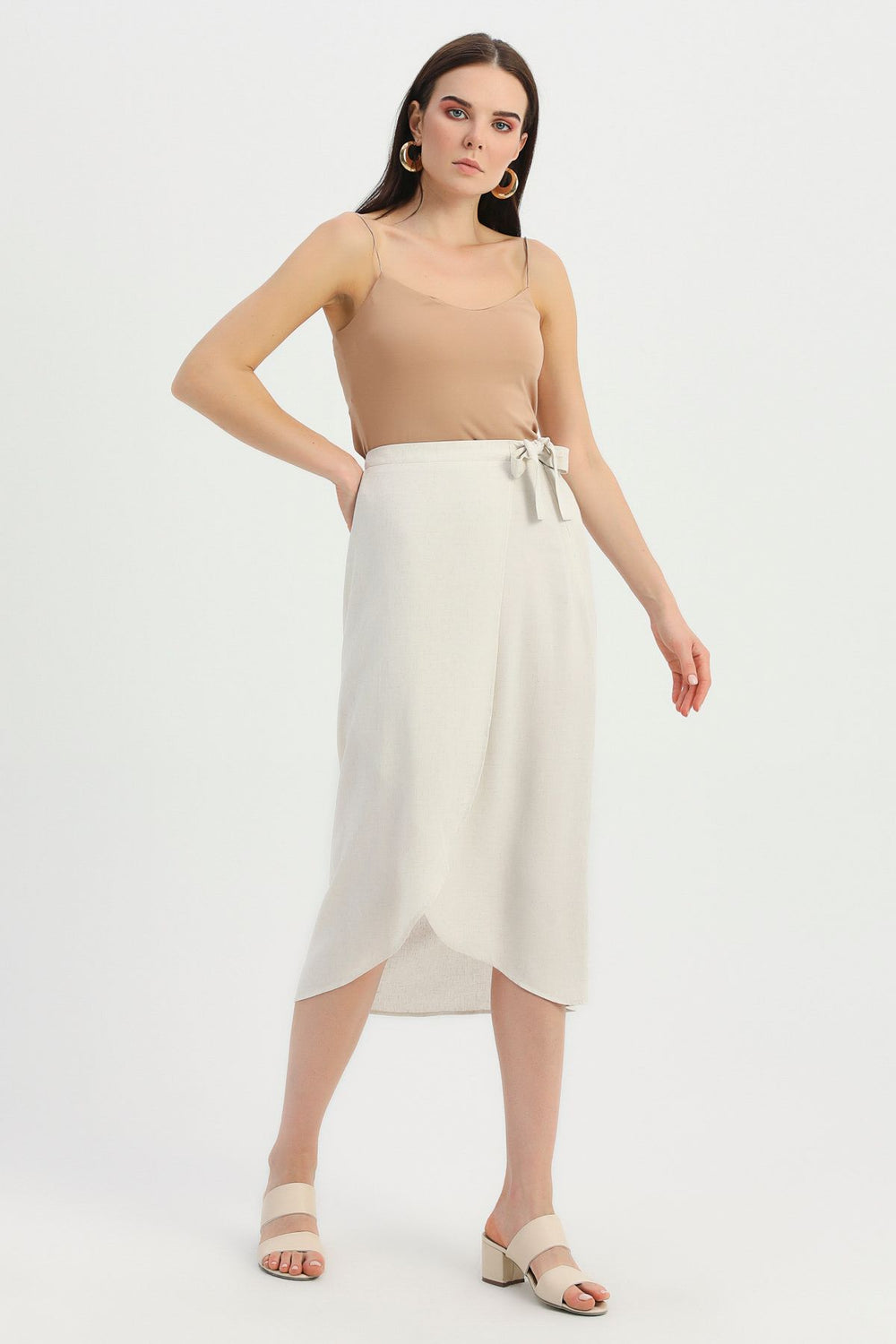 Desenli Anvelop Bağlama Detaylı Keten Etek Naturel