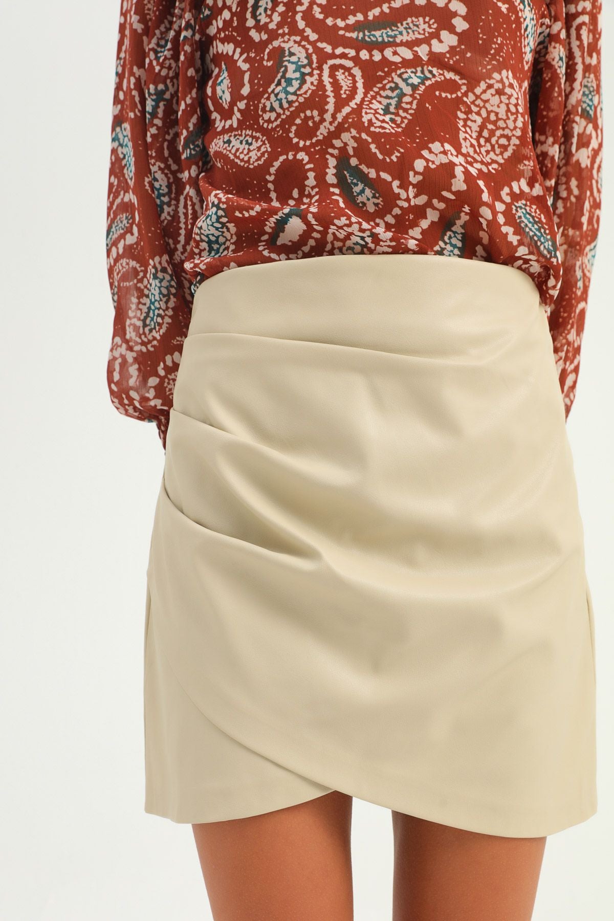 Envelop Leather Mini Skirt Stone