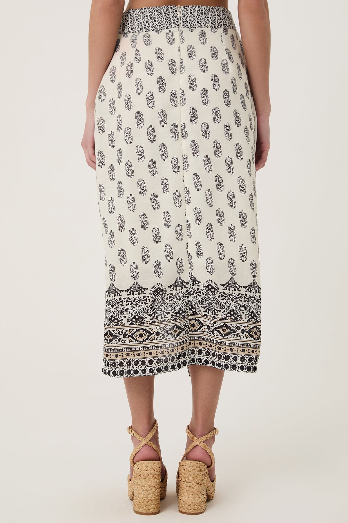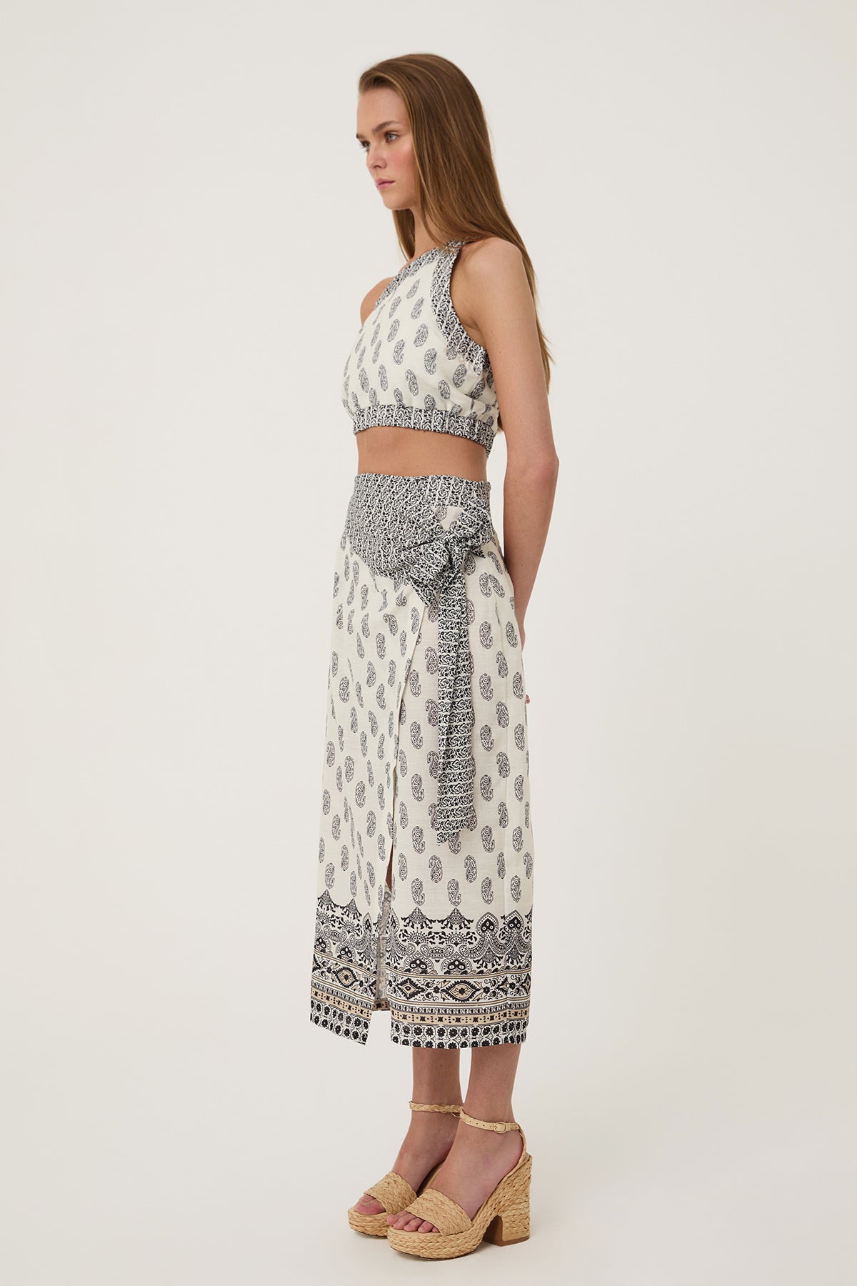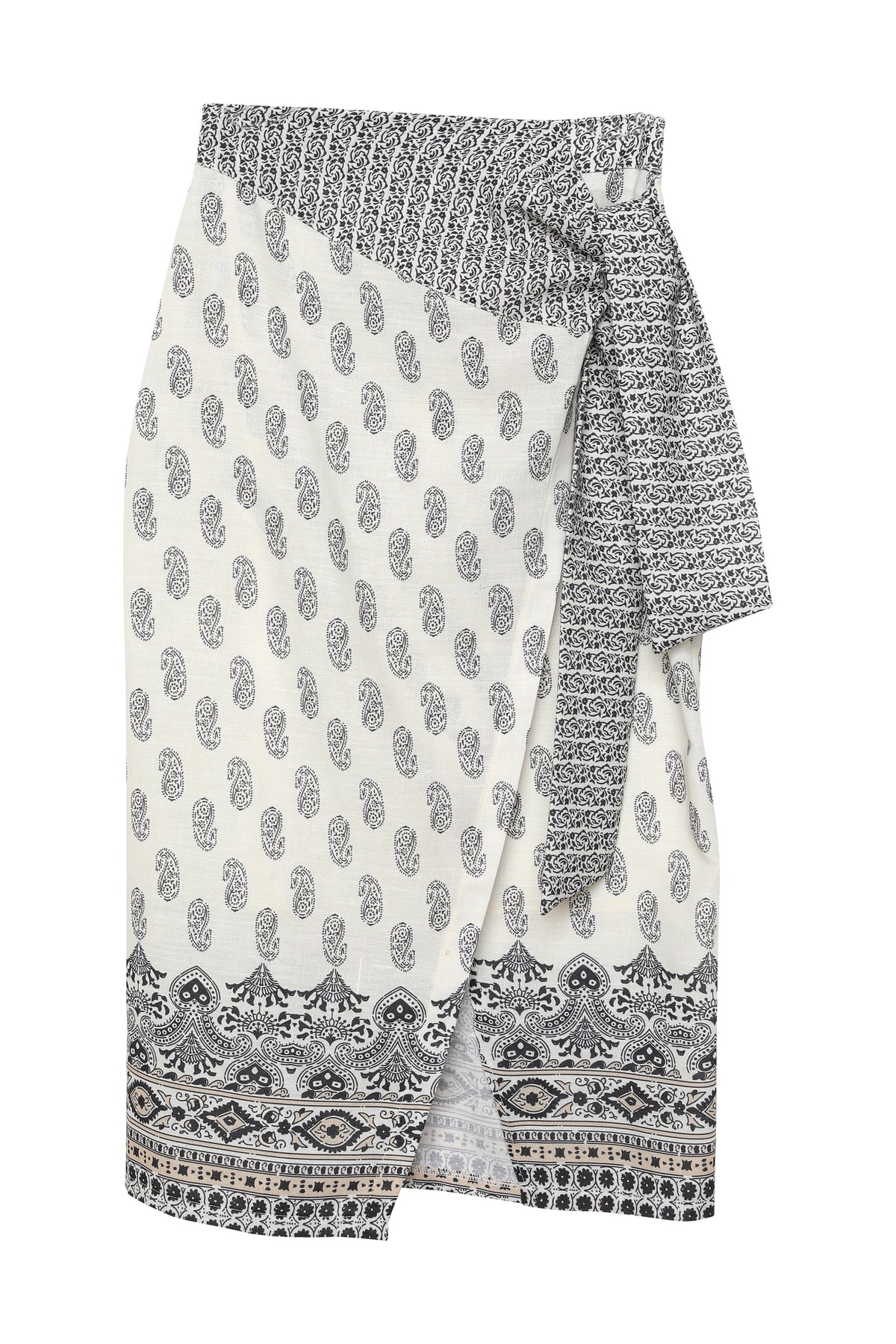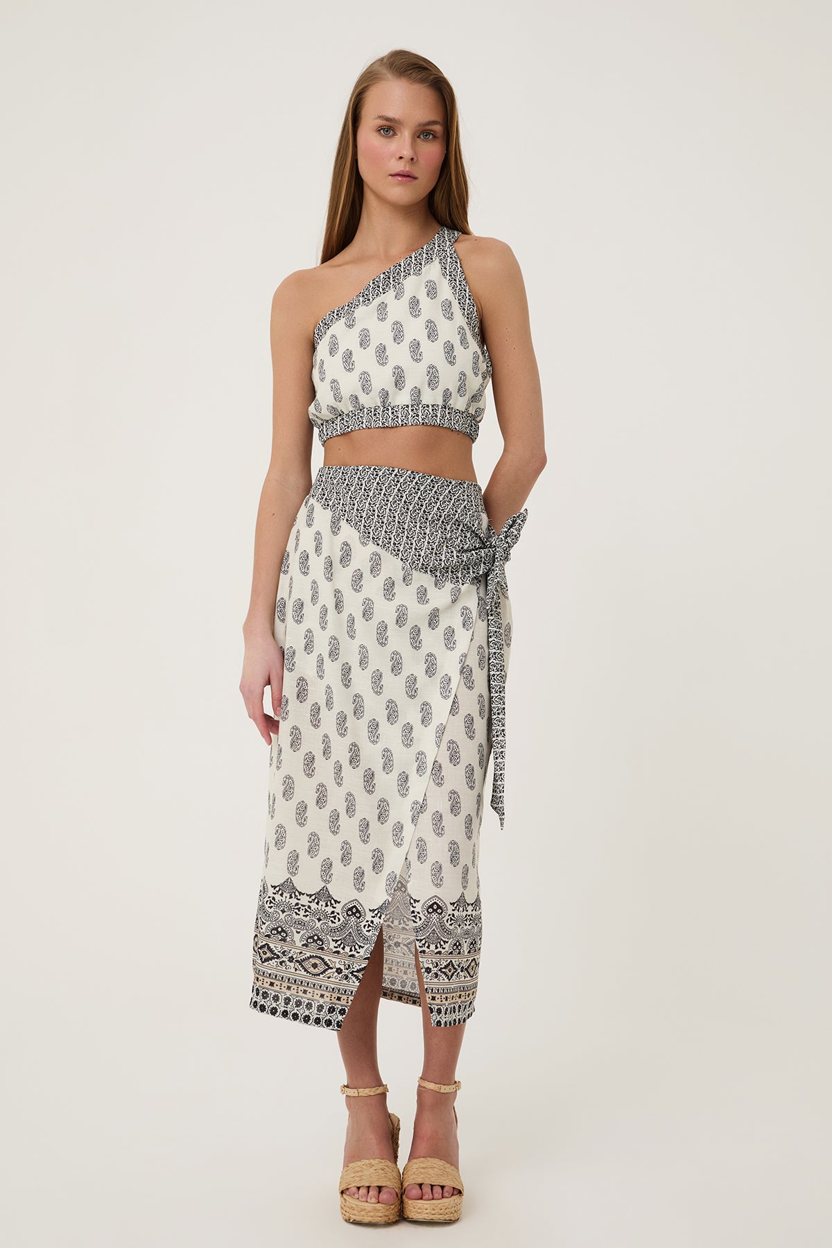 Desenli Anvelop Bağlama Detaylı Keten Etek Naturel
