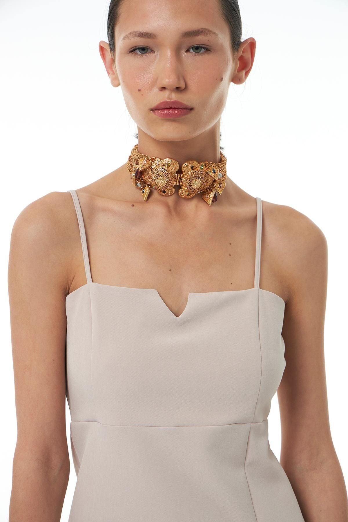 The rope-hanging dress model, which is animated with the slit detail, allows you to create a dynamic style even in the simplest combinations. The window detail used on the neckline of the design adds a different atmosphere to the slit mini dress model. You can create a nice office style by combining the zippered back mini dress with a crop or blazer jacket. The straps are adjustable.