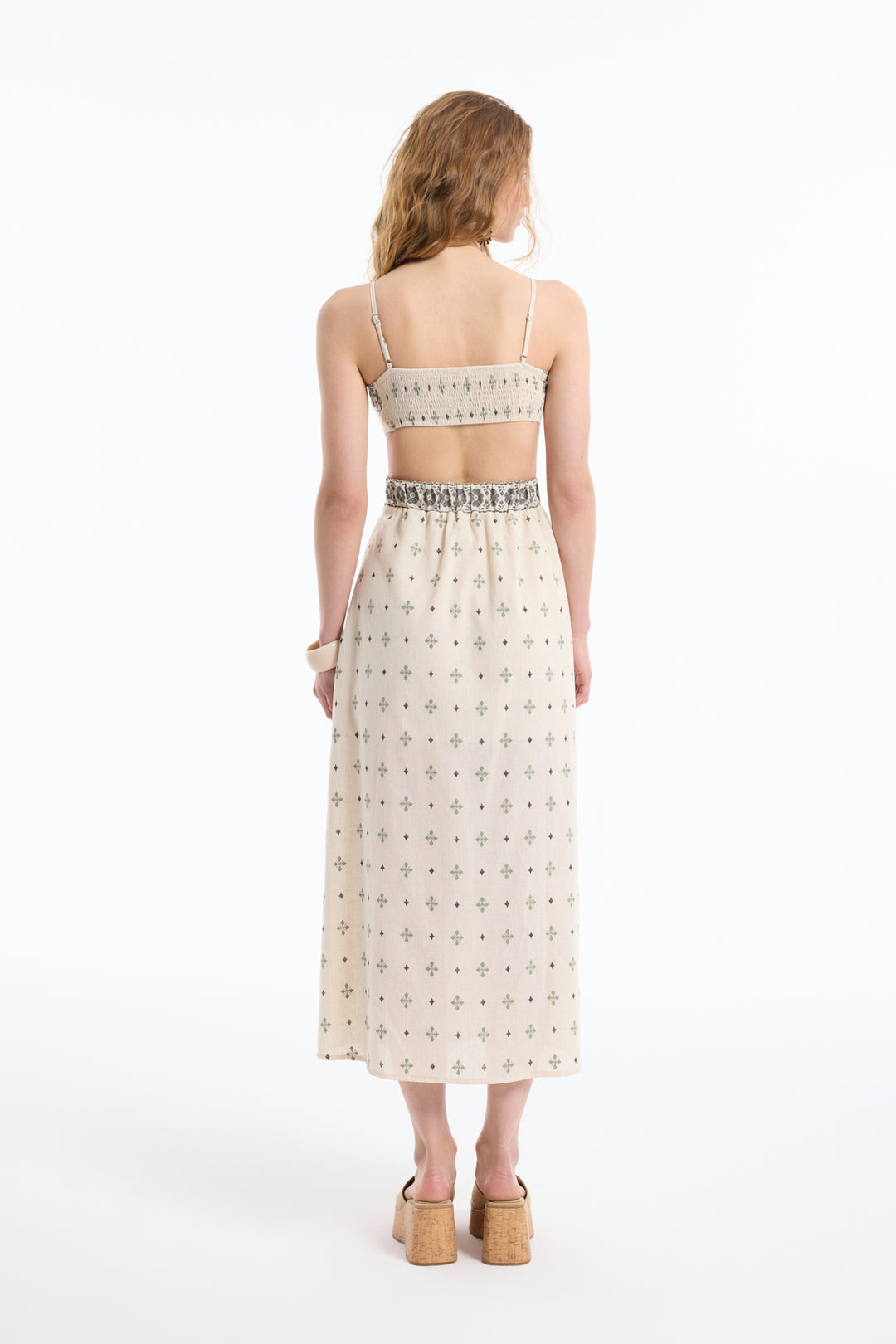 Etnik Desenli Cut Out Dekolteli Elbise Naturel