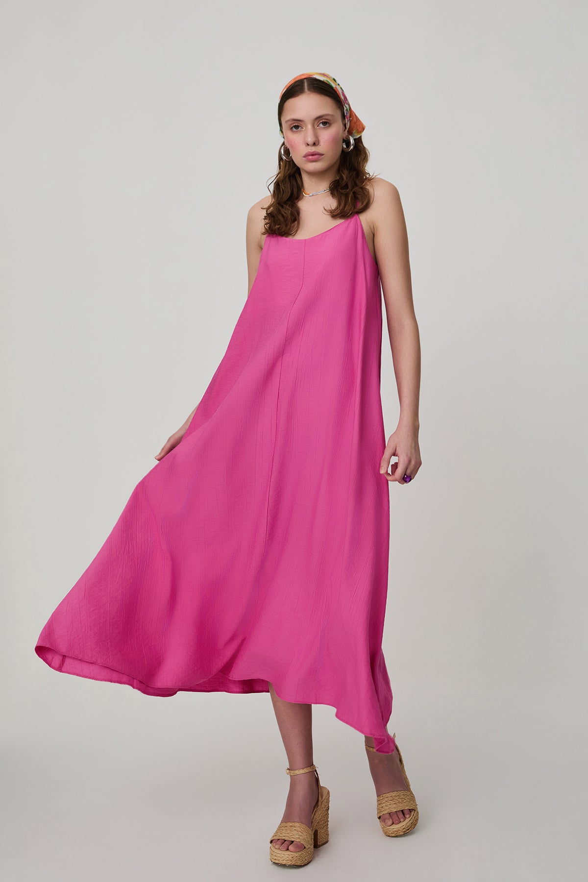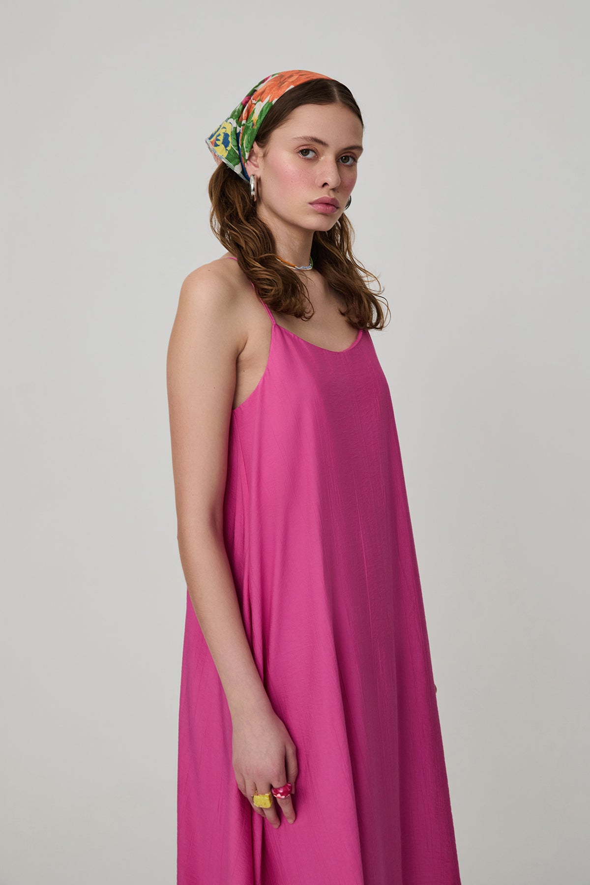 ince askılı, midi boy elbise.