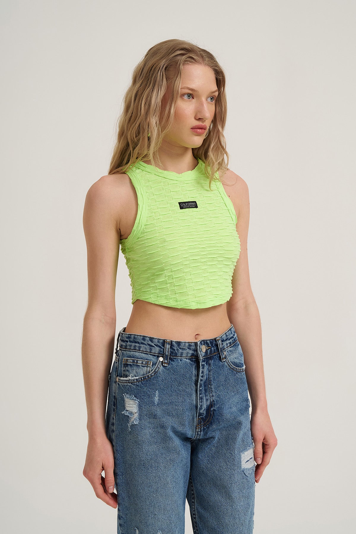Etiket Detaylı Halter Yaka Atlet Neon Yeşil