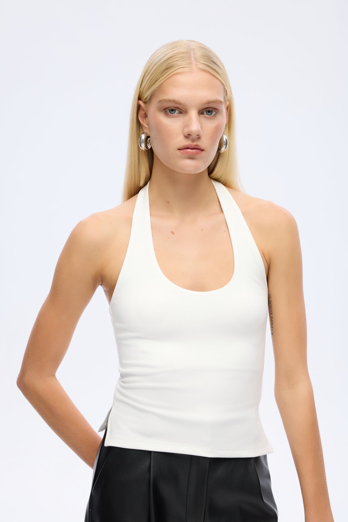 Sırt Dekolteli Halter Yaka Basic Atlet Ekru