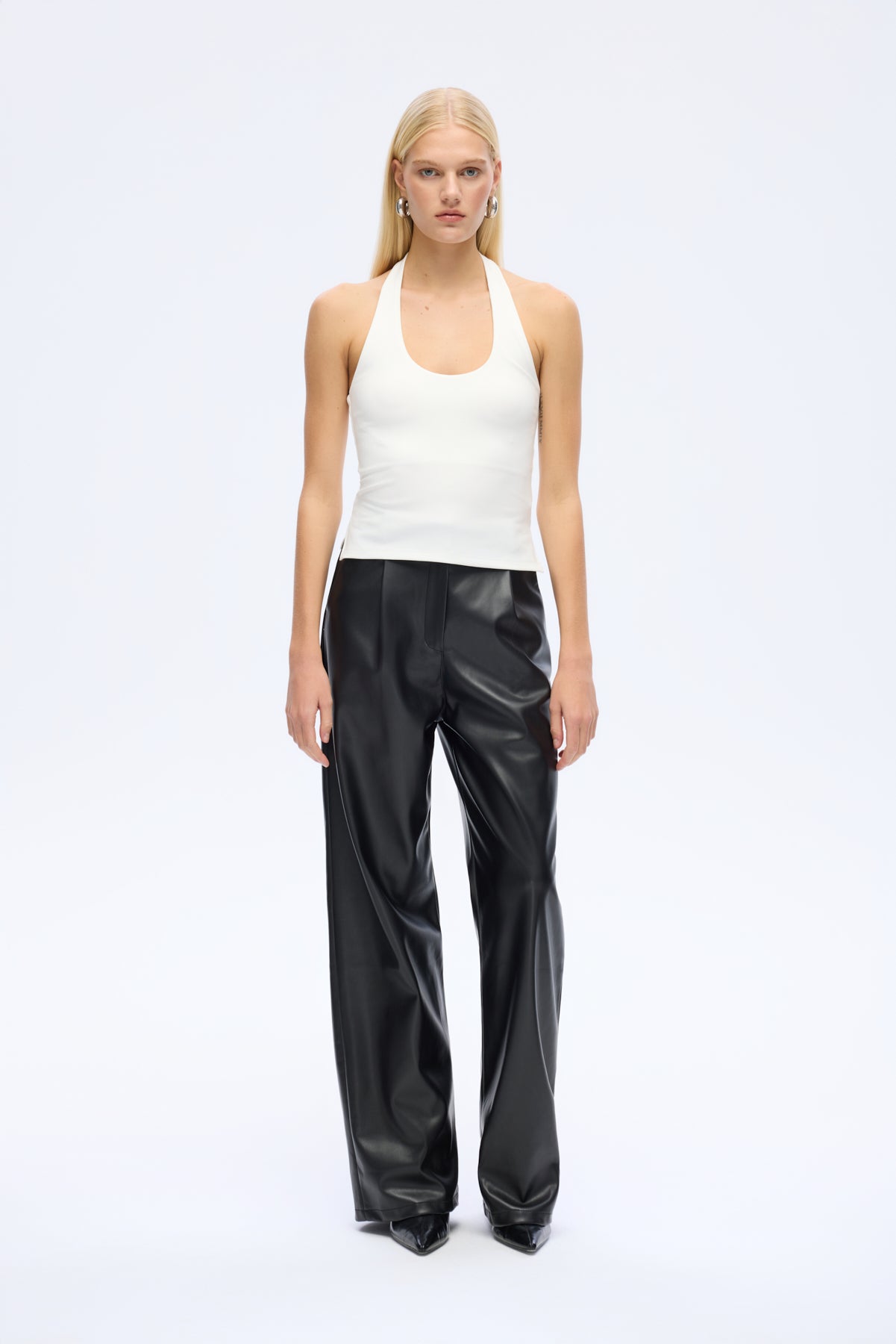 İnce askılı, halter yaka, sırt dekolteli, astarsız, göğüs kısmı çift kat kumaşlı, yandan kısa yırtmaçlı, basic crop boy atlet.