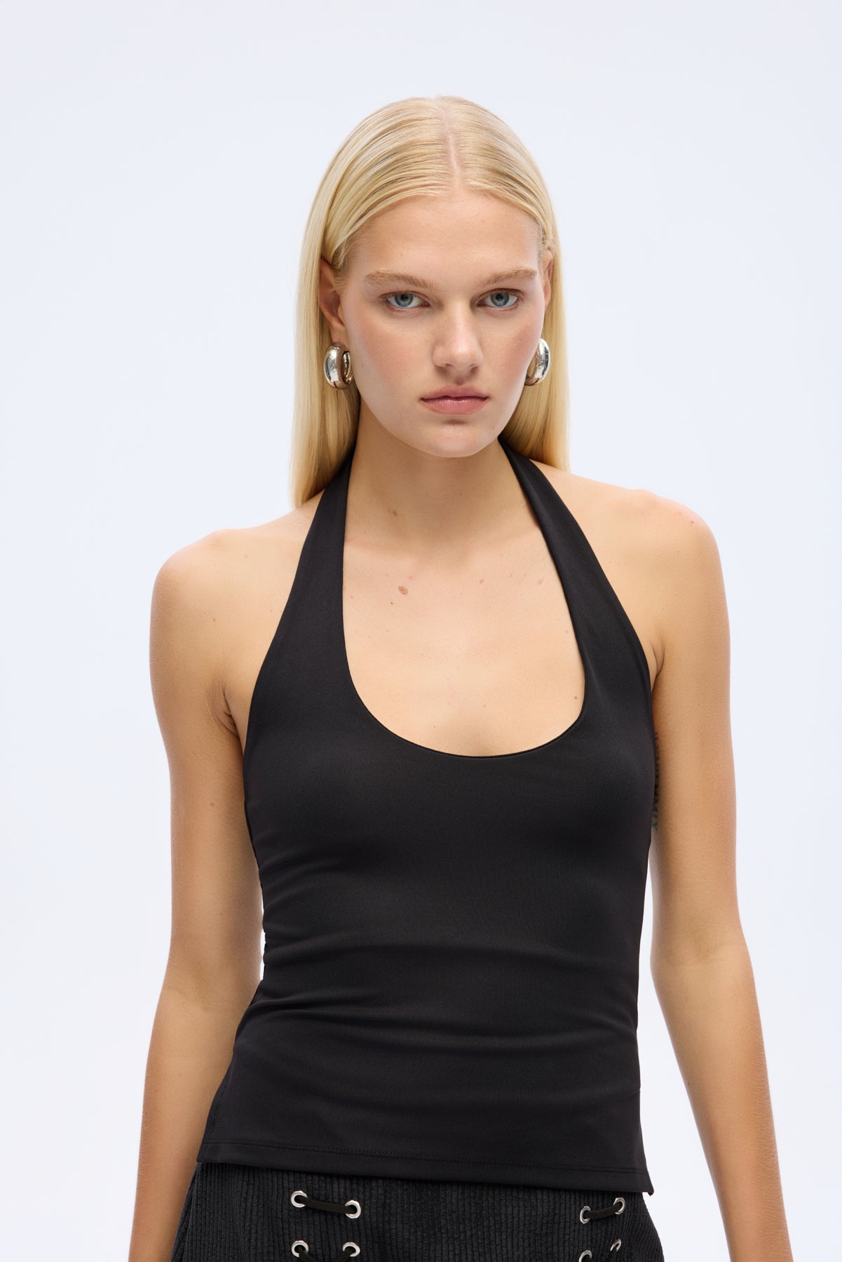 Sırt Dekolteli Halter Yaka Basic Atlet Siyah