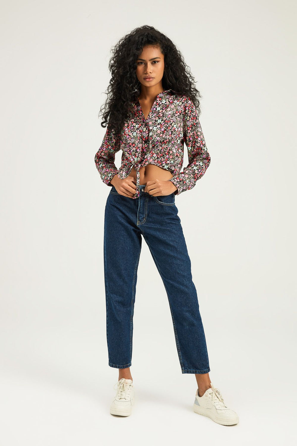 Çizgili Kruvaze Bağlamalı Gömlek Mavi