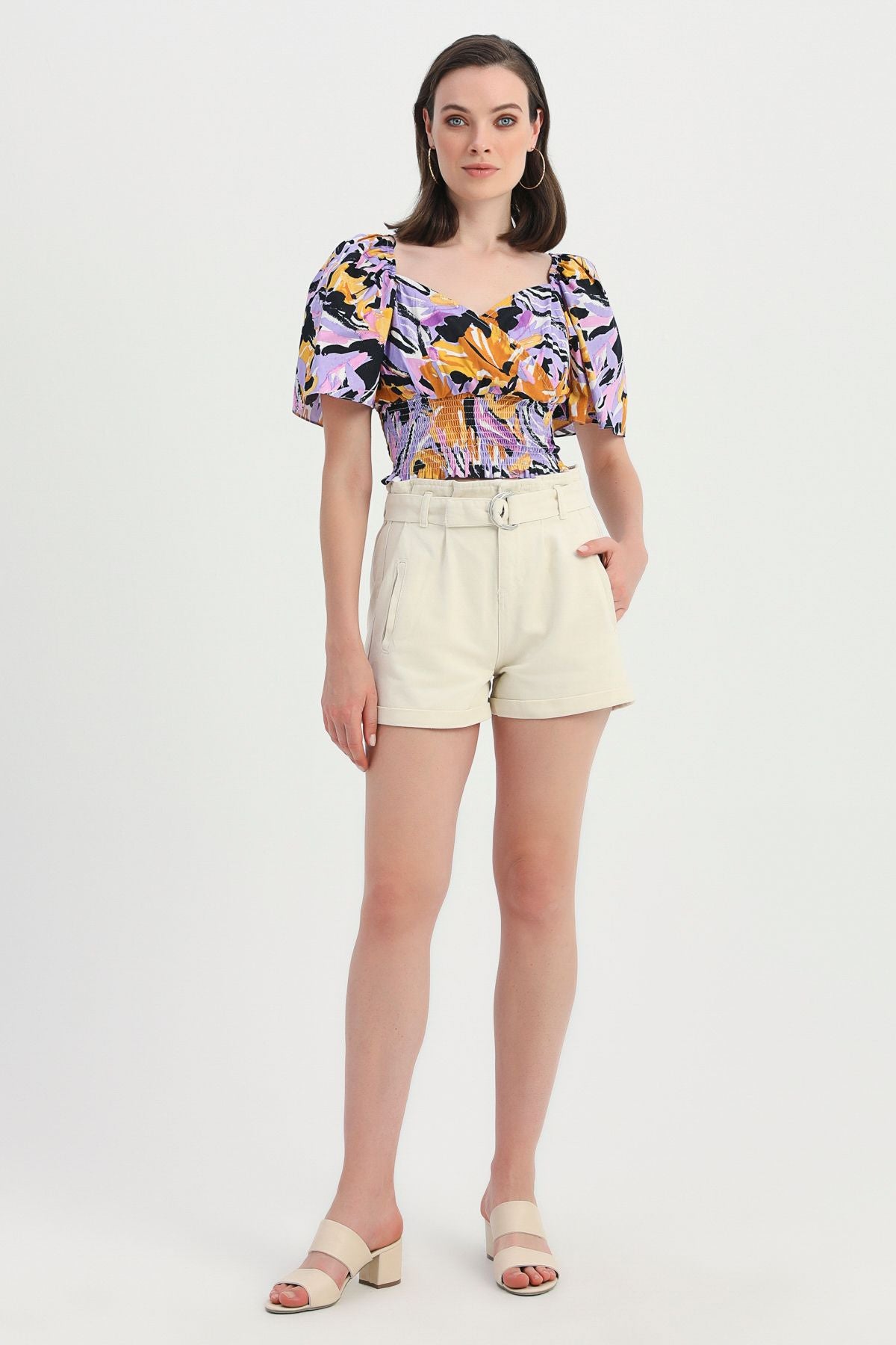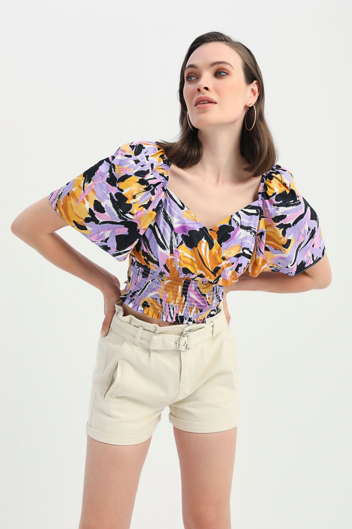 The double-breasted blouse is already an unforgettable summer evening, with its breathable, comfortable fabric blended with cotton and lycra, and its form with vibrant colors that carry the vitality of summer.