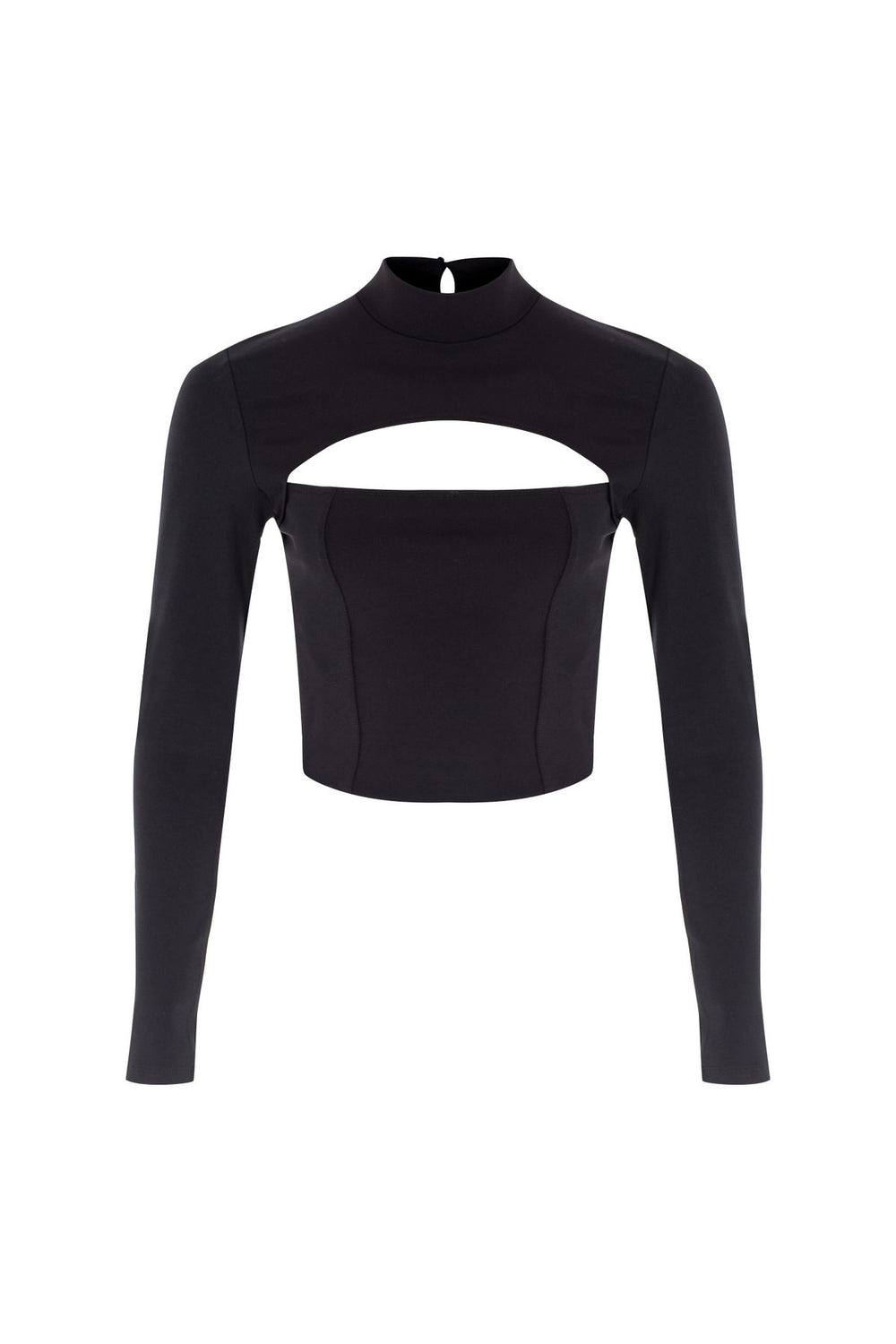 Sırt Dekolteli Uzun Kollu Crop Bluz Siyah