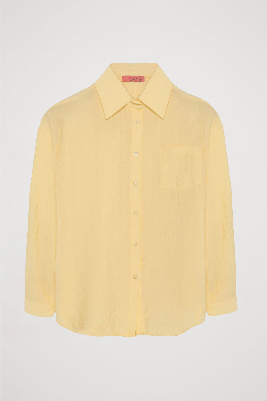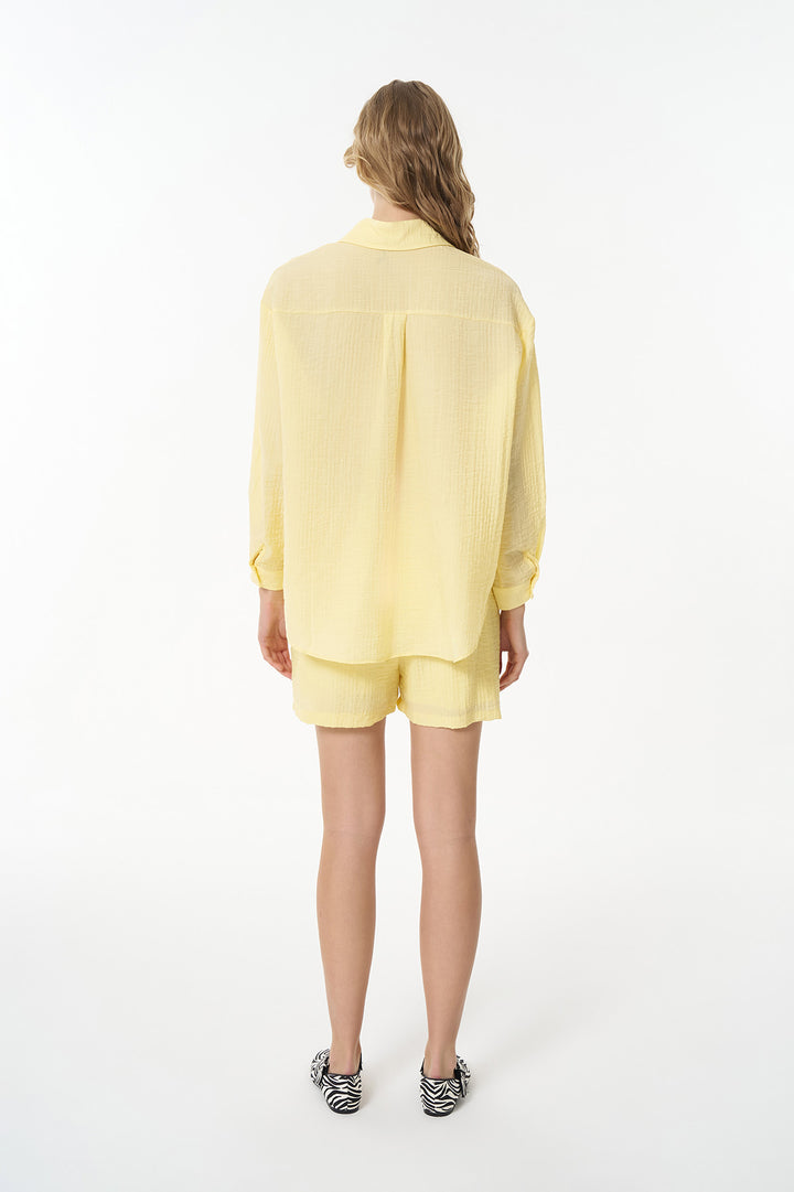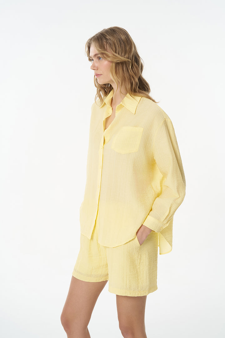 Dokulu Cepli Oversize Basic Gömlek Sarı