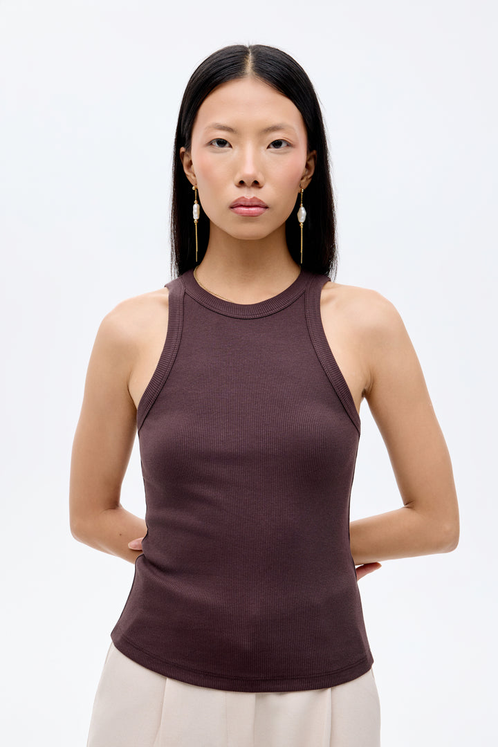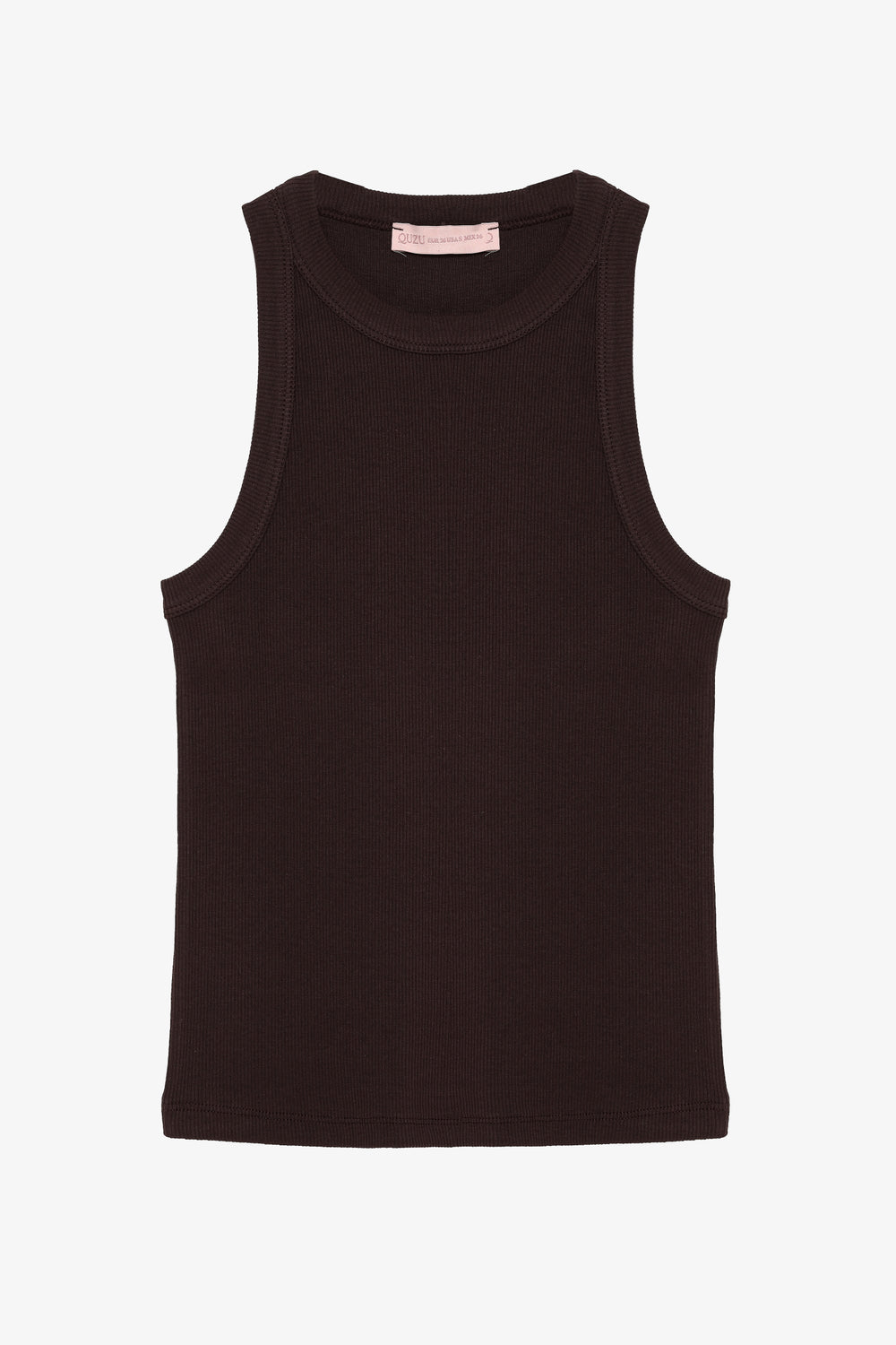 Halter Yaka Basic Fitilli Atlet Koyu Kahve