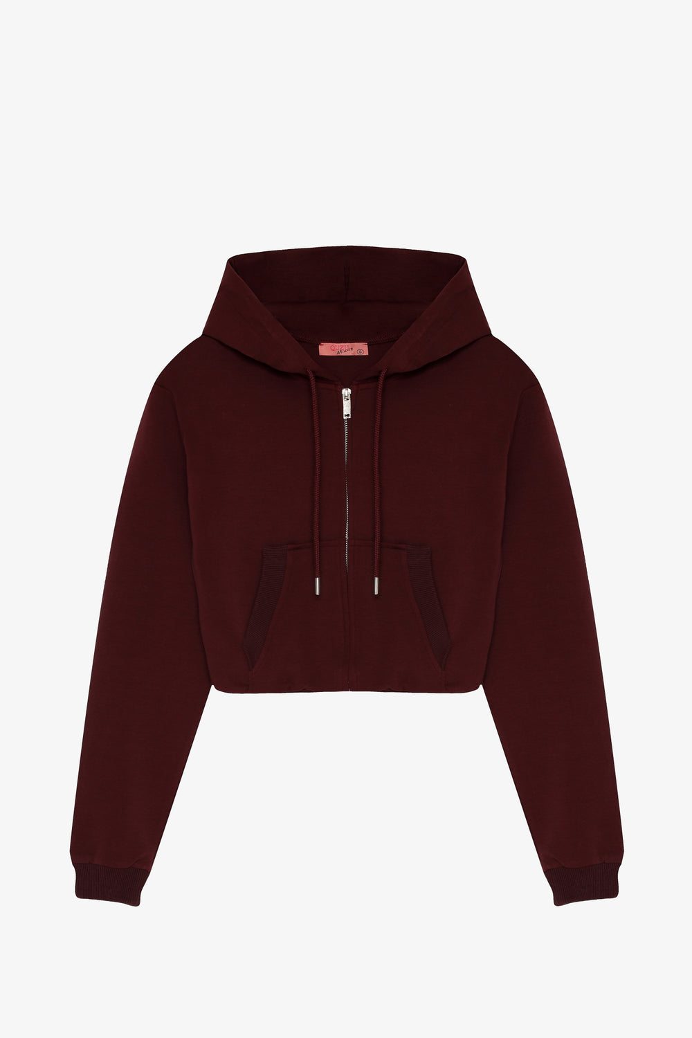 Kapüşonlu Fermuarlı Basic Sweatshirt Bordo