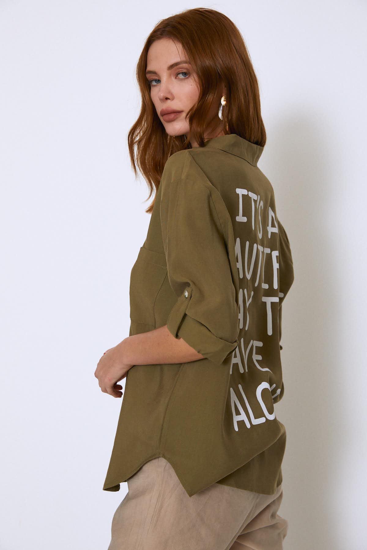 Back Printed Tencel Shirt Khaki