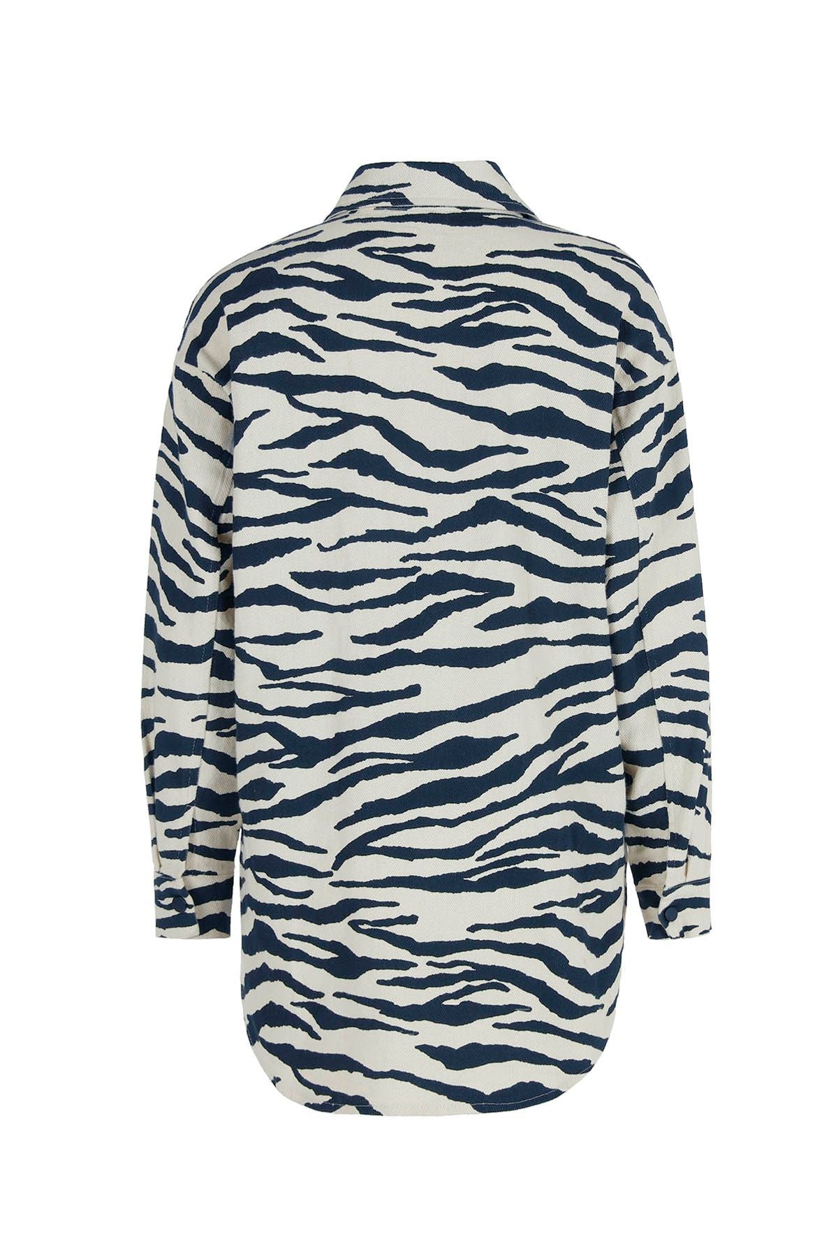 Zebra Patterned Gabardine Shirt Indigo