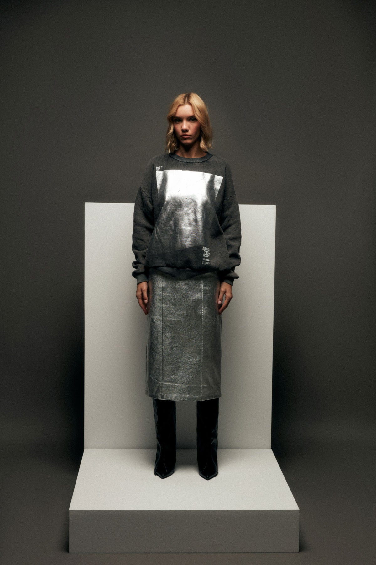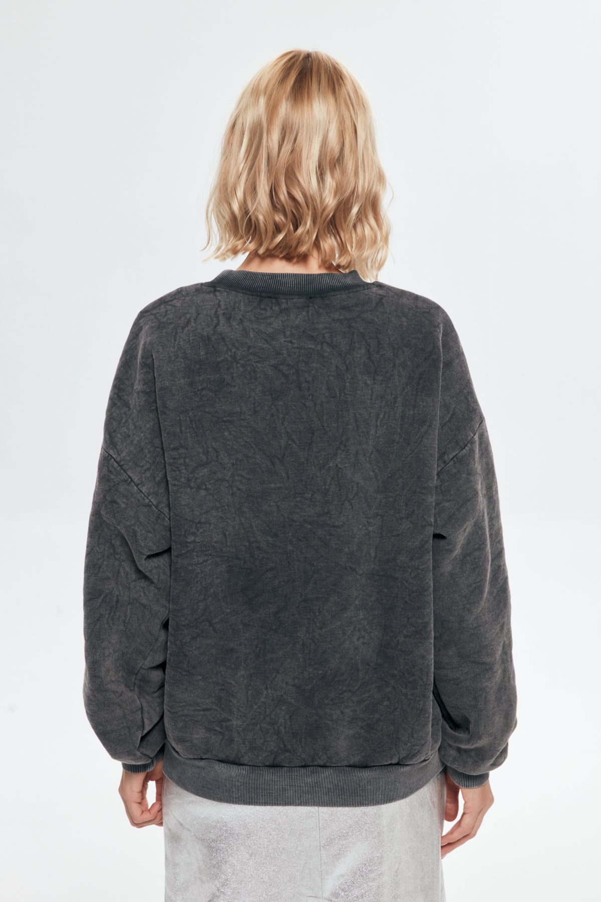 Bisiklet yakalı, uzun kollu, oversize, folyo baskı detaylı sweatshirt.