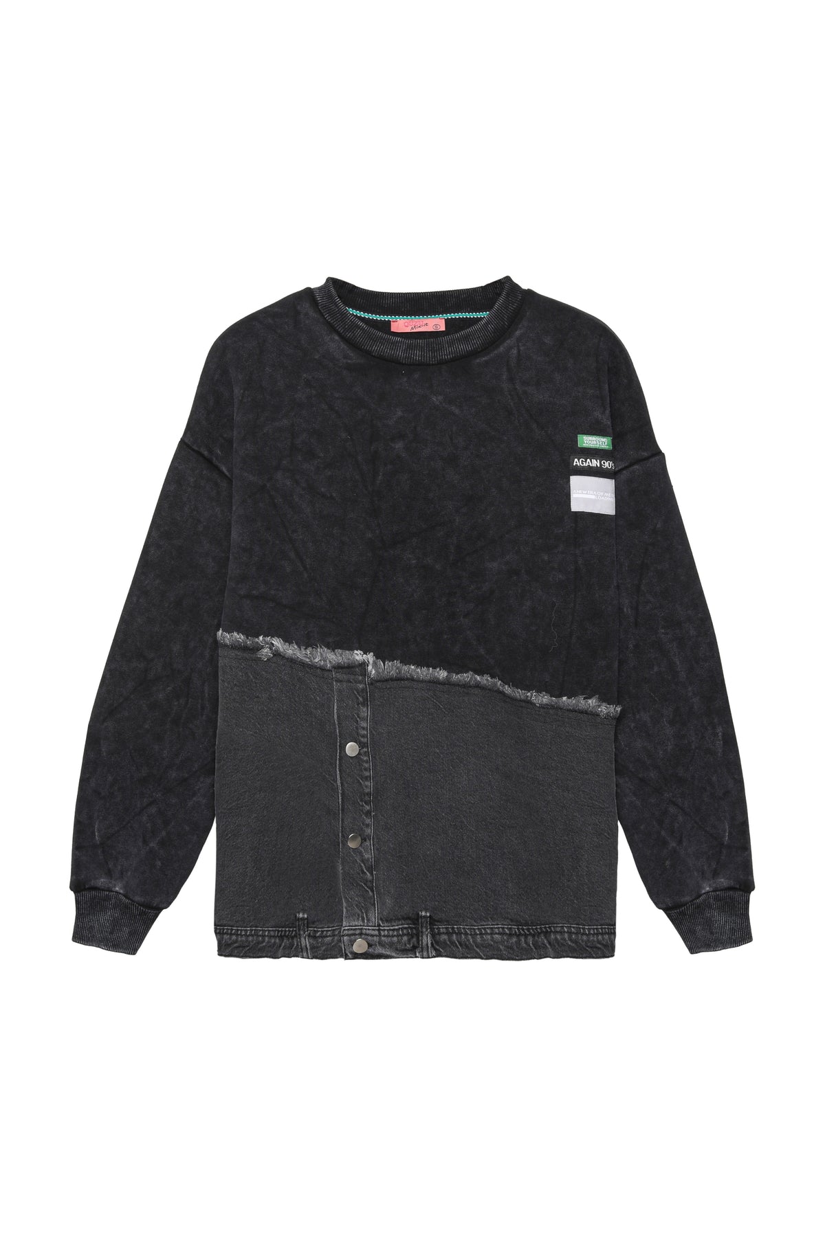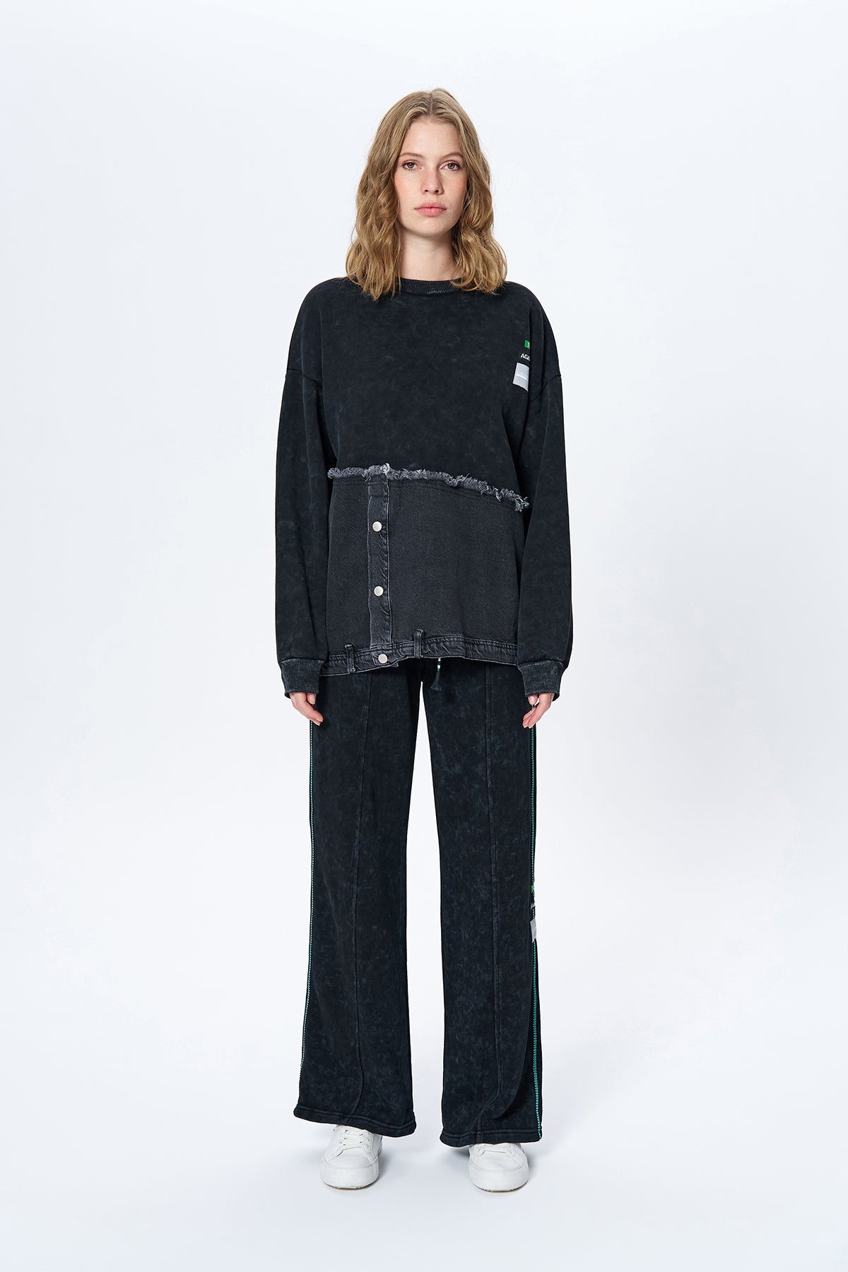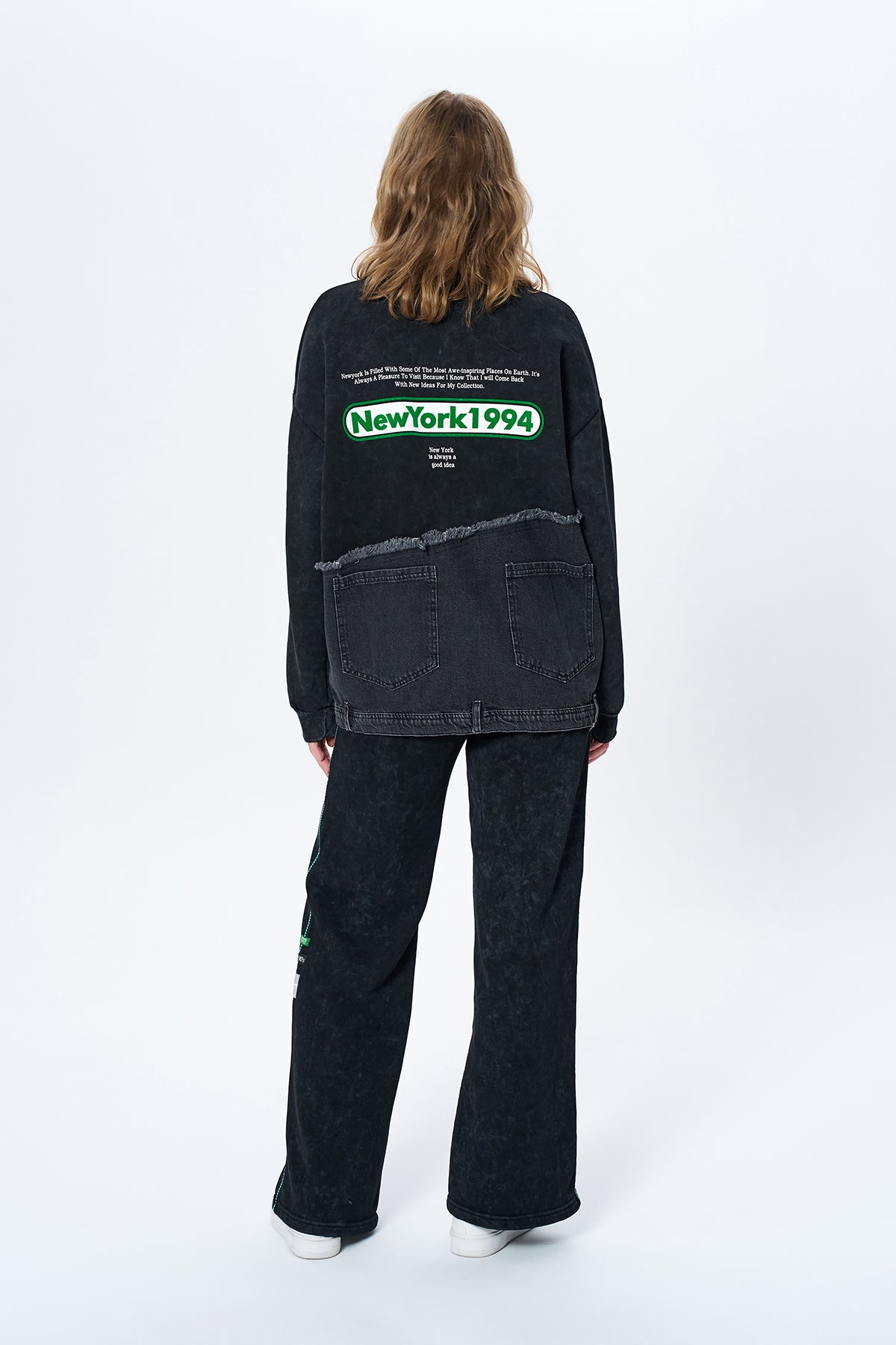 Sırtı Renkli Baskılı Denim Matchli Sweatshirt Siyah