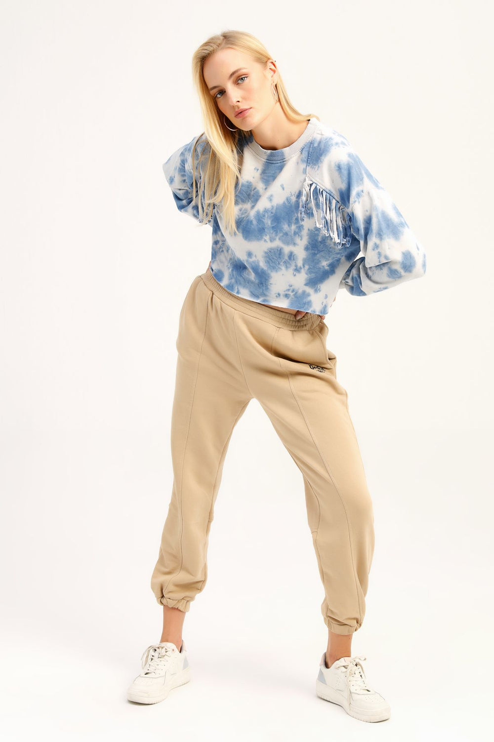 Tasseled Tie Dye Sweatshirt Blue