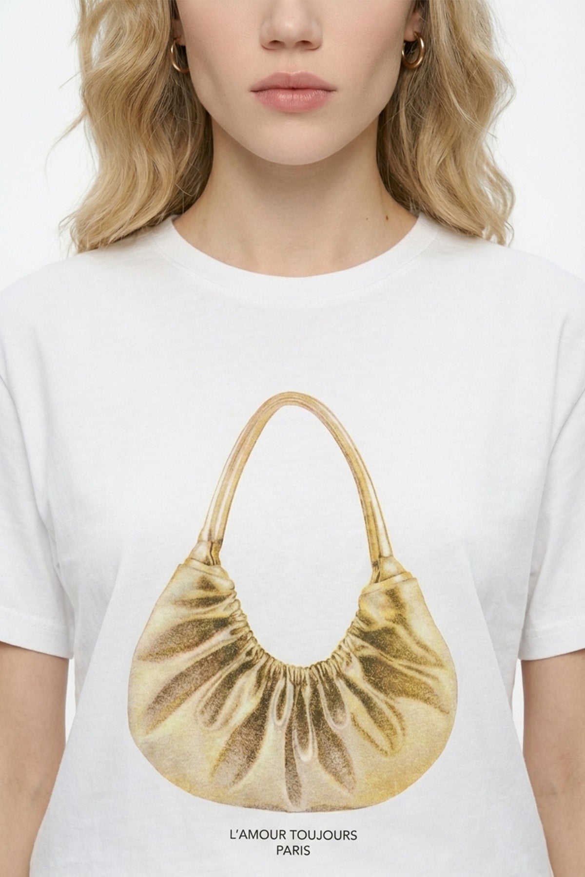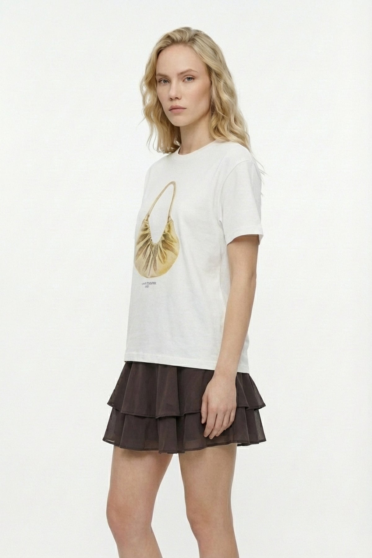 Çanta Baskılı Bisiklet Yaka Tişört Ekru