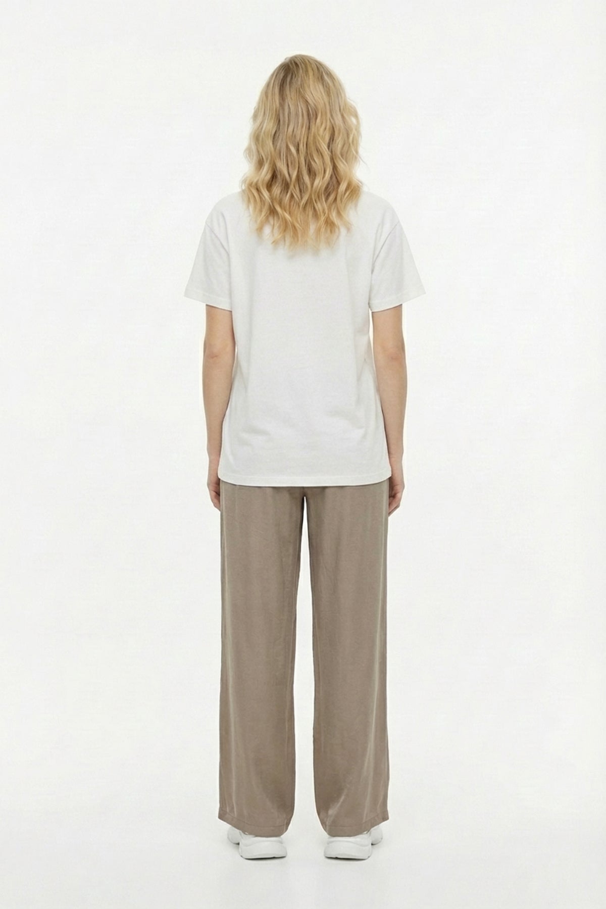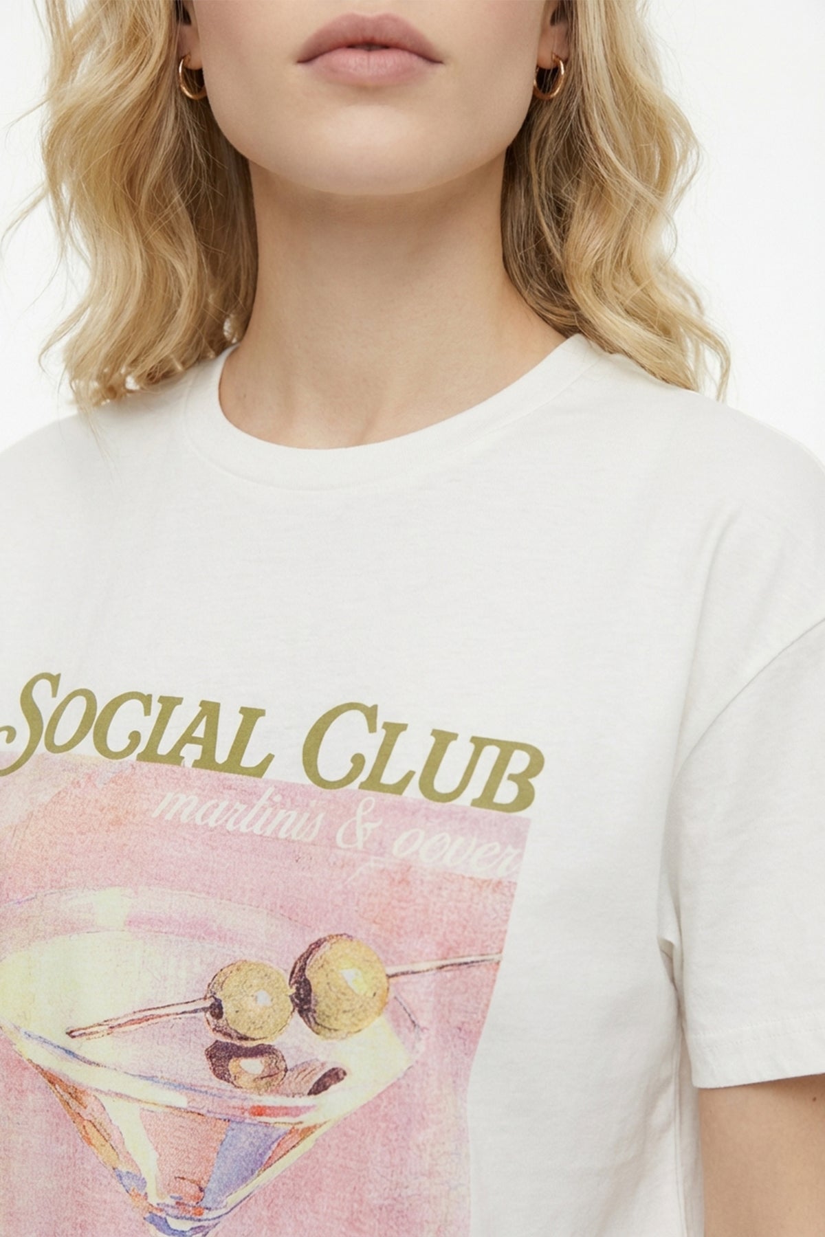 Kokteyl Baskılı Bisiklet Yaka Tişört Ekru