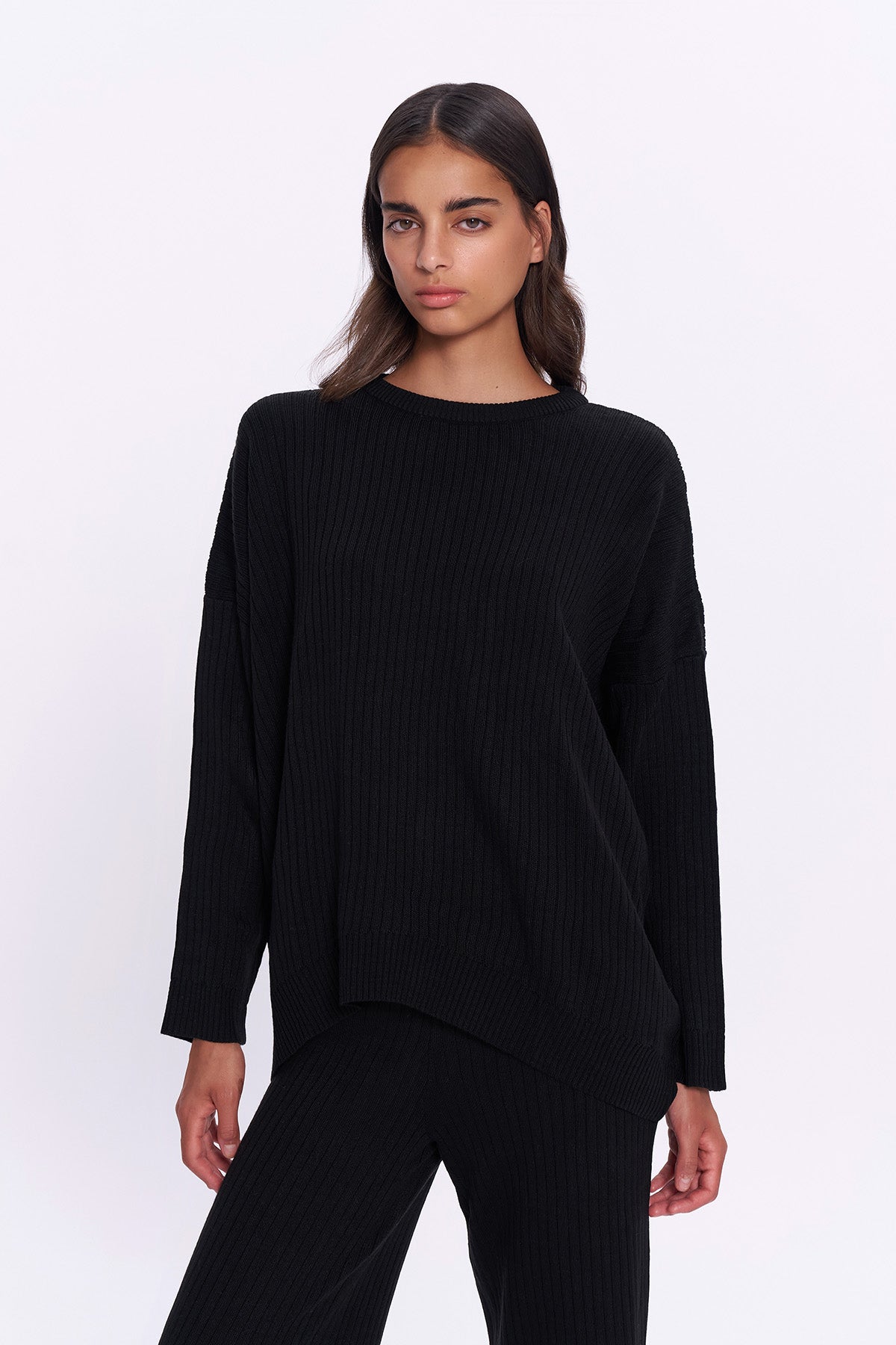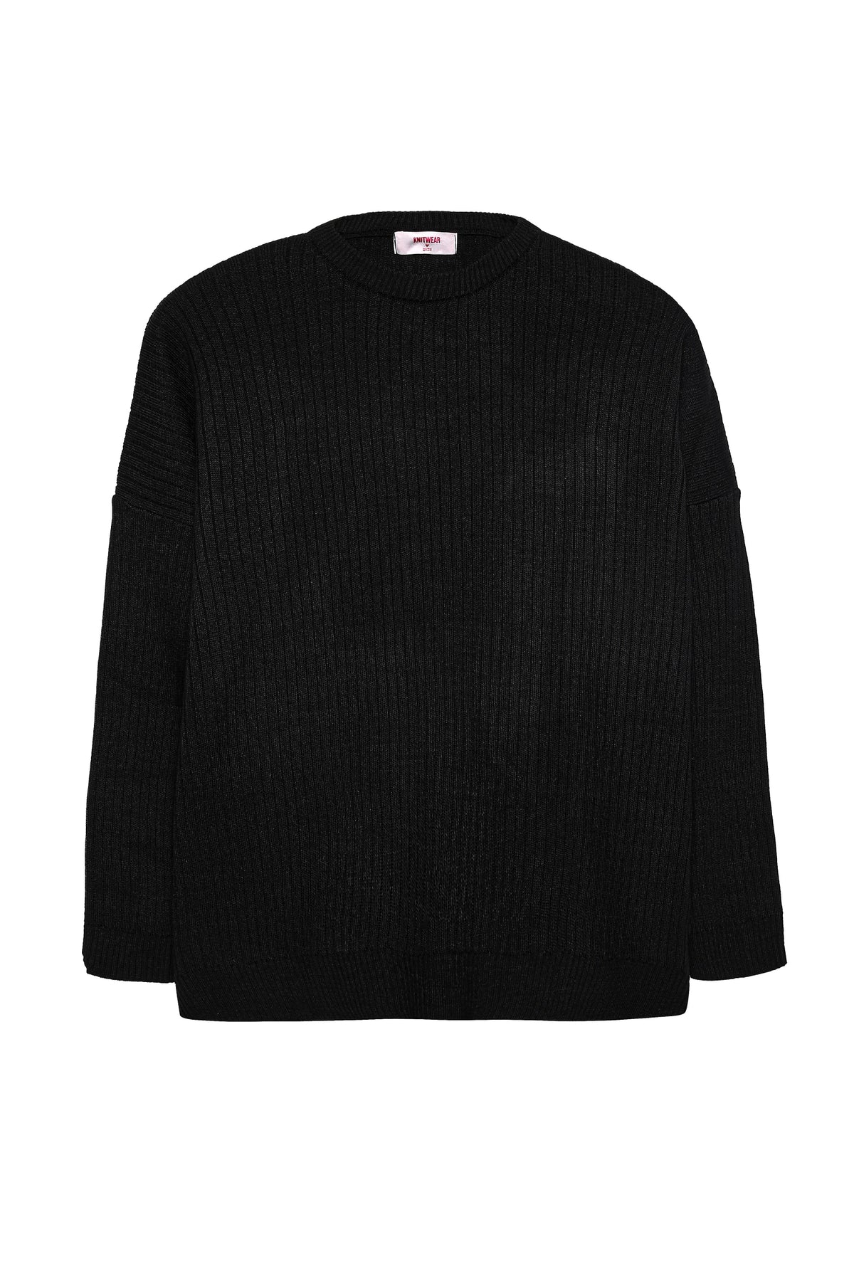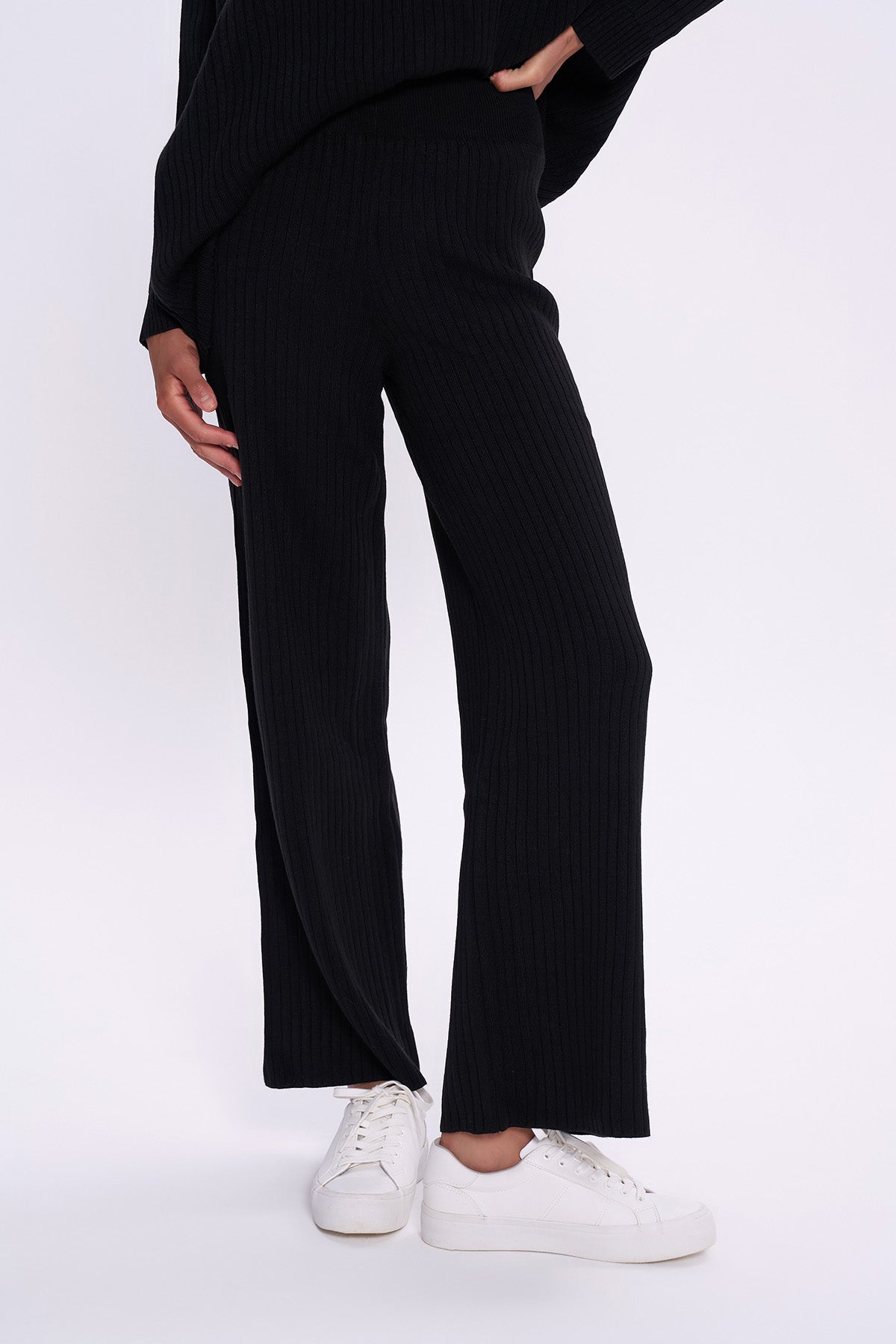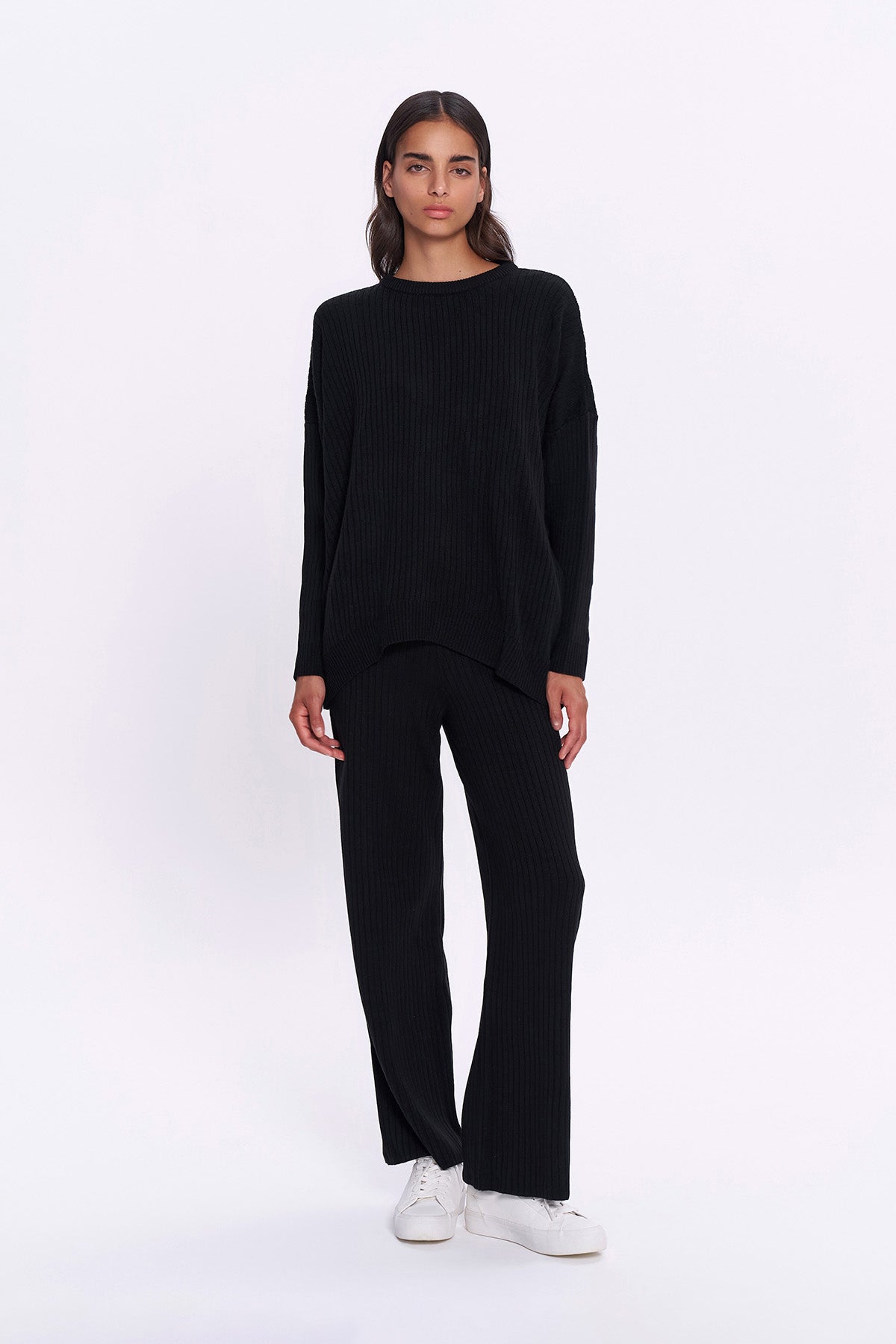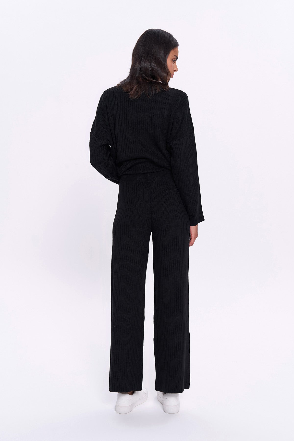 Takım halİnde satılmaktadır. üst bİsİklet yakalı, uzun kollu, fİtİllİ basİc kazak. Alt yüksek bel, genİş paça, fİtİllİ trİko pantolon.