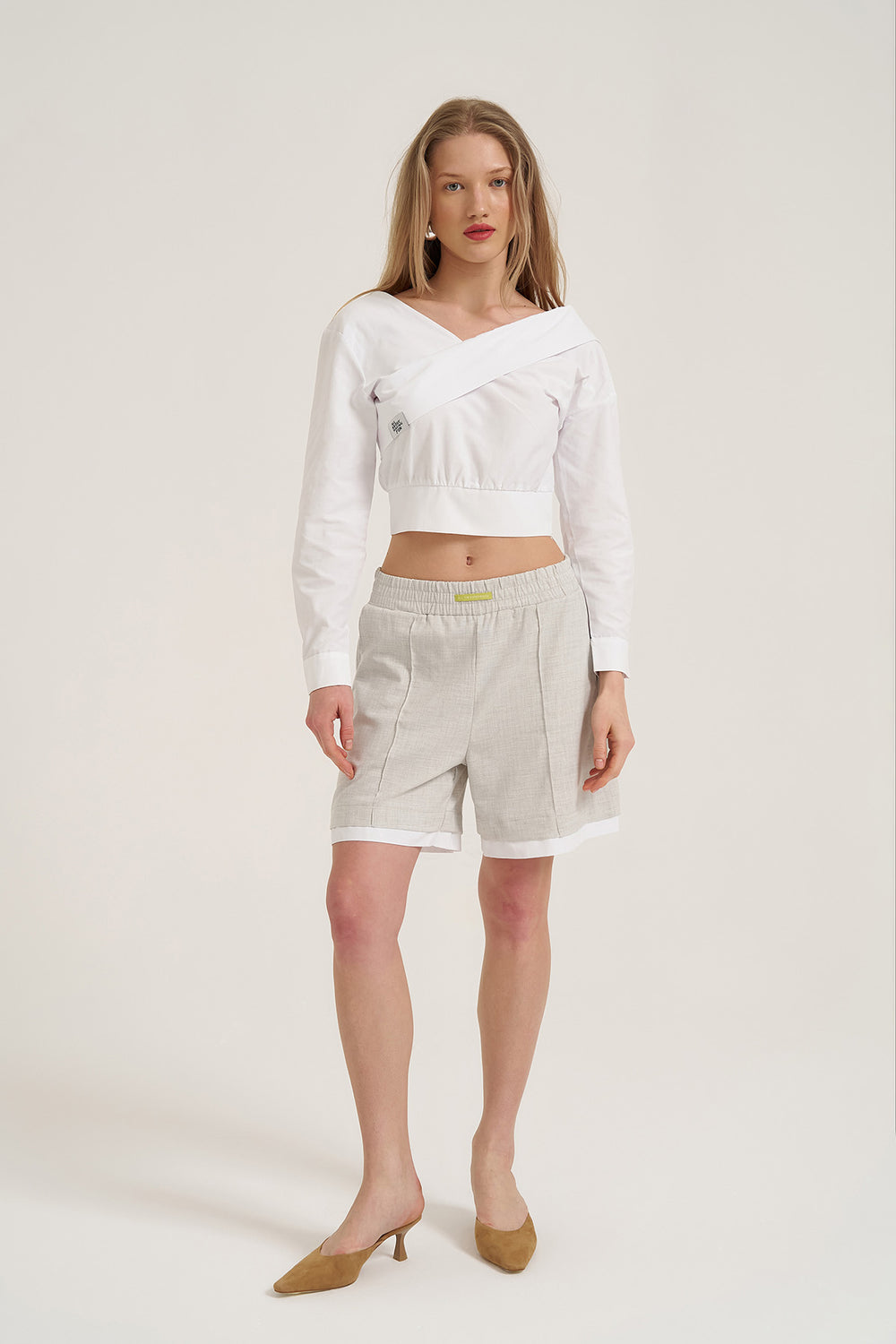 Paçası Garni Detaylı Beli Lastikli Şort Açık Gri