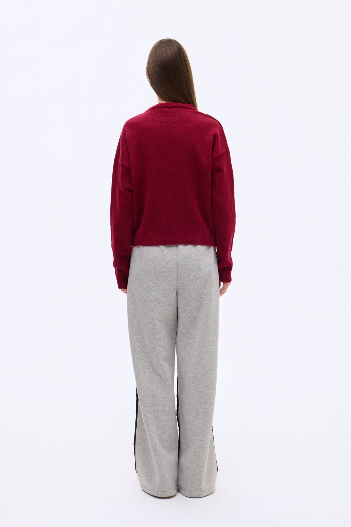 Kabartma Yazılı Bisiklet Yaka Triko Kazak Bordo