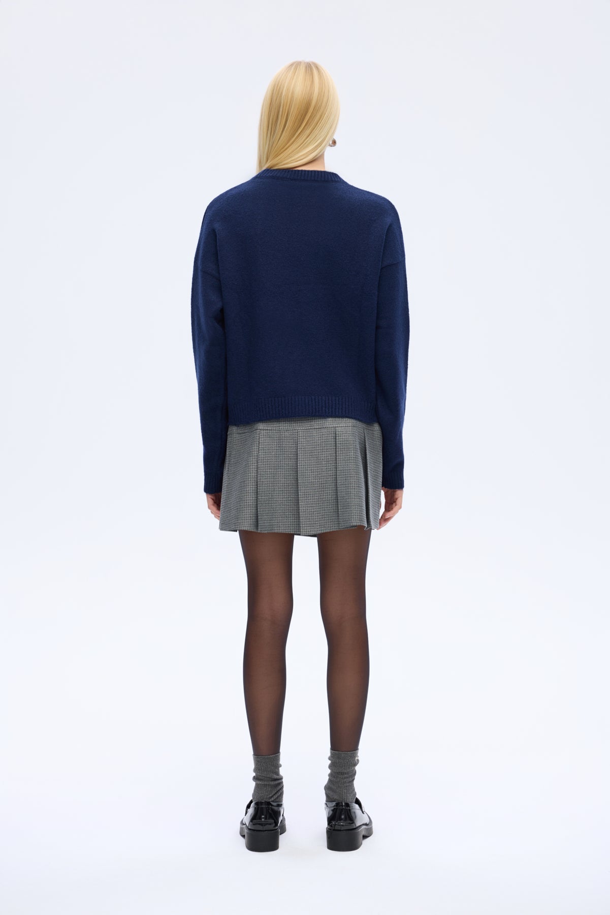 Kabartma Yazılı Bisiklet Yaka Triko Kazak Lacivert