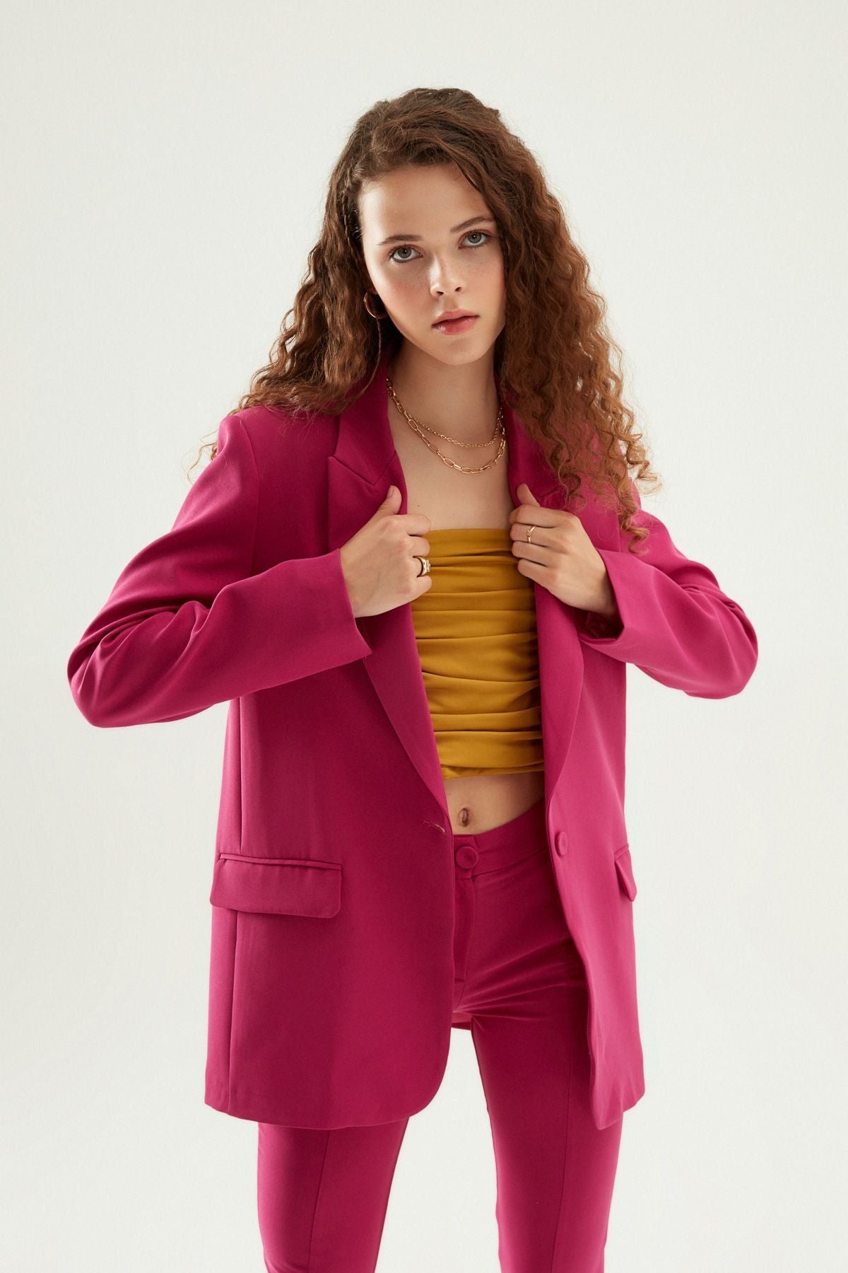 If you don't give up on comfort by saying a little color and a little seriousness, it means it's time to meet the spring style code blazer model! You can choose this blazer model with a plain T-shirt, dark denim shorts or jeans to contrast with it; You can raise the bar with the look you will create with your sneakers. If you insist on a single color combination, you can complete your combination with Quzu's comfortable bustiers and trousers of the same color.