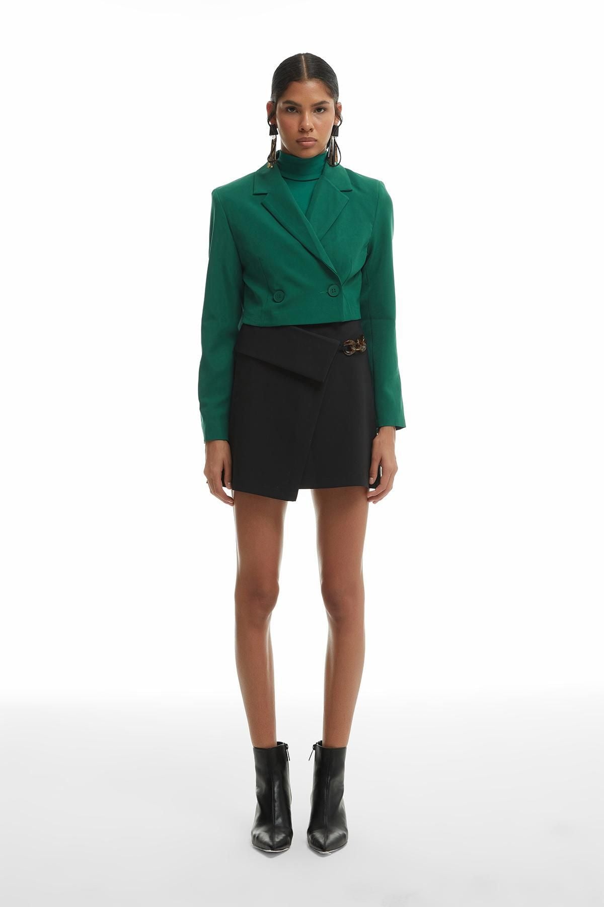 Double Breasted Crop Blazer Jacket Dark Green