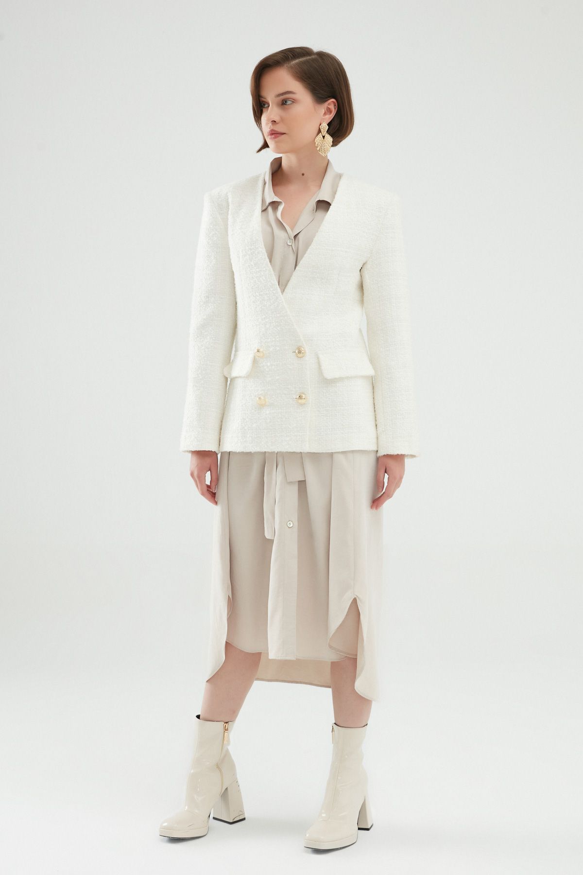 Double Breasted Tweed Blazer Jacket White