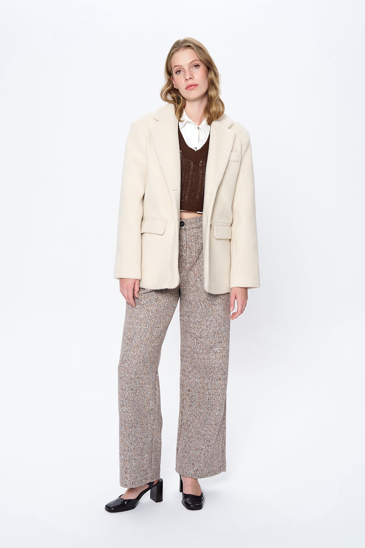 Kruvaze Yaka Kaşe Blazer Ceket Ekru