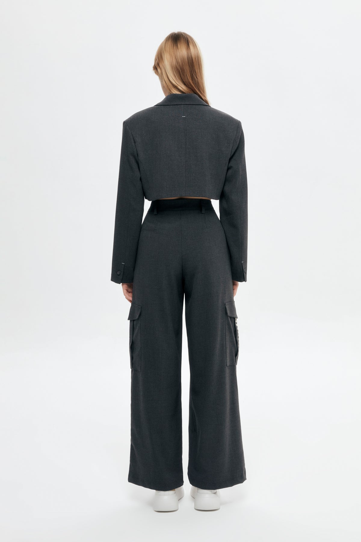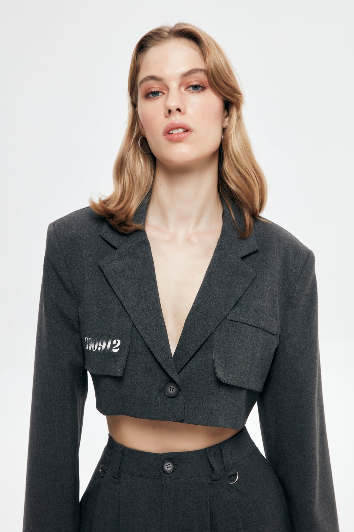 Piece Detailed Crop Blazer Jacket Anthracite