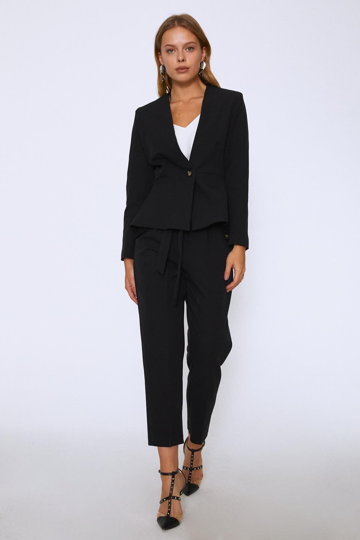 If jackets are among your indispensables, you should make another place in your closet for the most beautiful one. You can complete the peplum basic jacket with Quzu trousers.