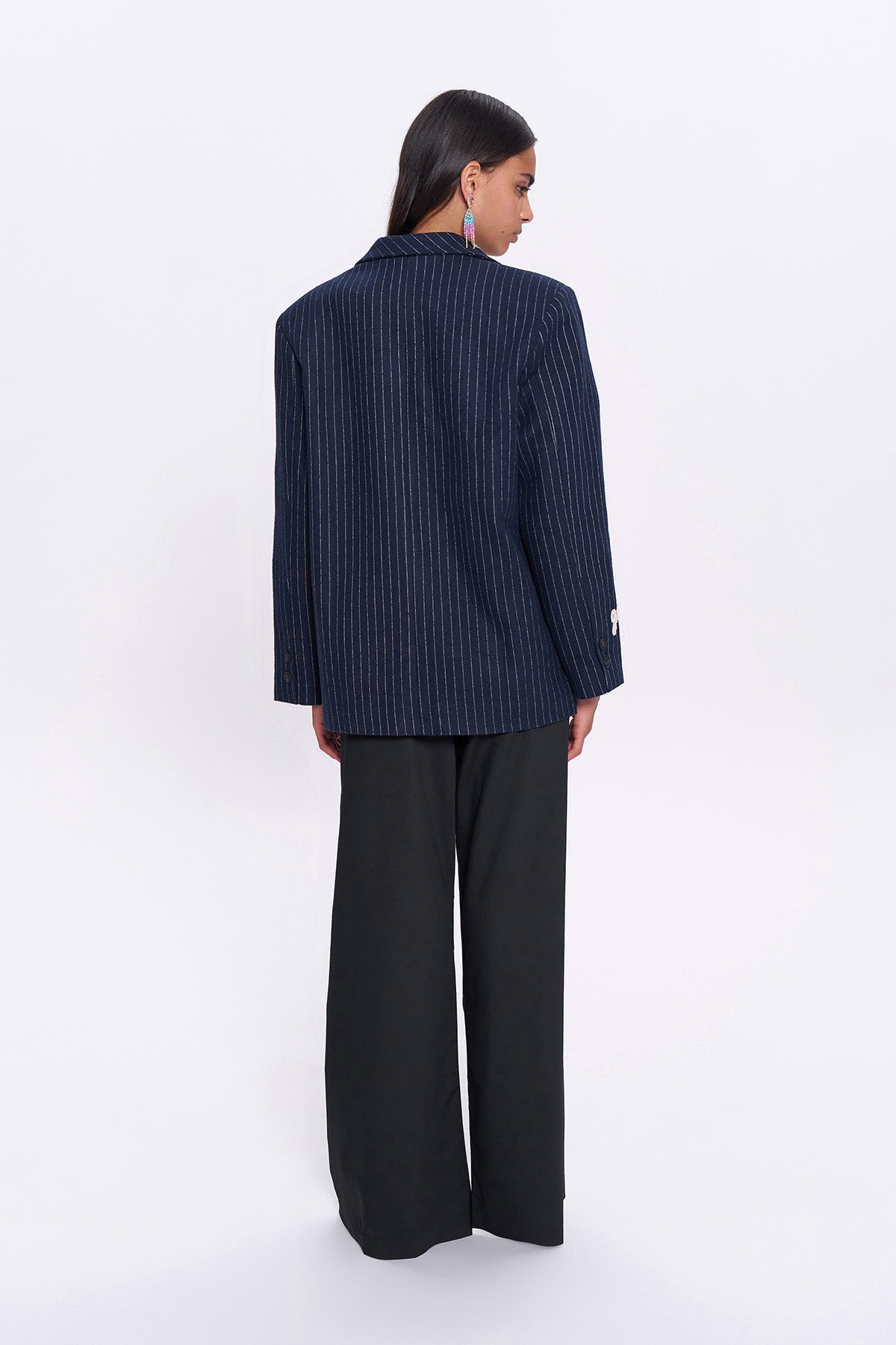 Renkli Nakış Detaylı Kaşe Blazer Ceket Lacivert