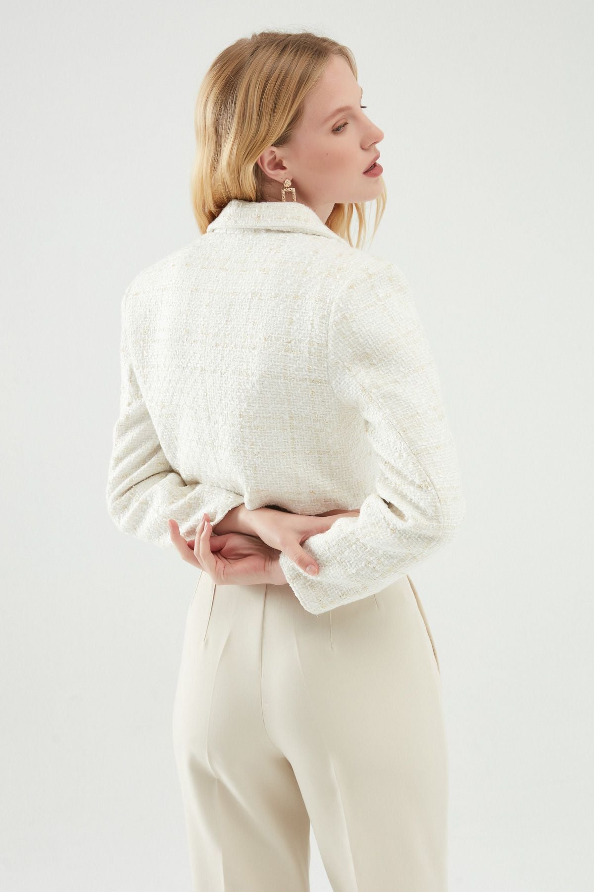 Tweed Crop Blazer Jacket White