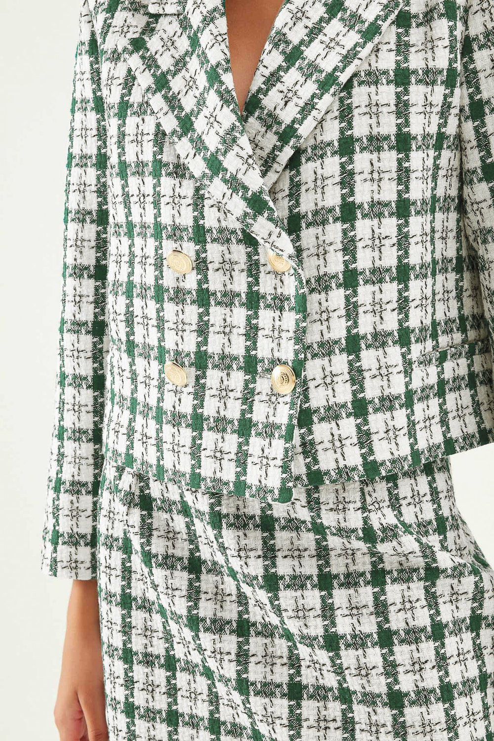 Double Breasted Crop Blazer Jacket Dark Green