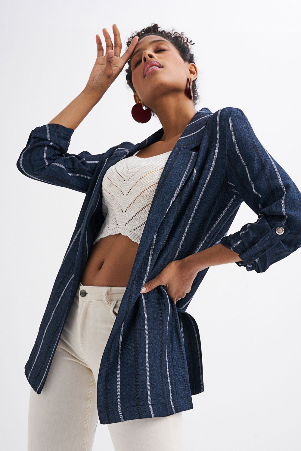Striped Blazer Jacket Navy
