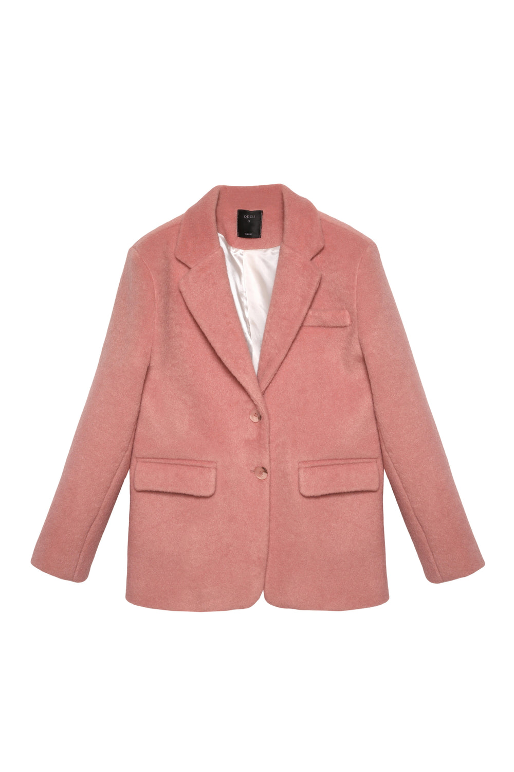 Kruvaze Yaka Kaşe Blazer Ceket Pembe