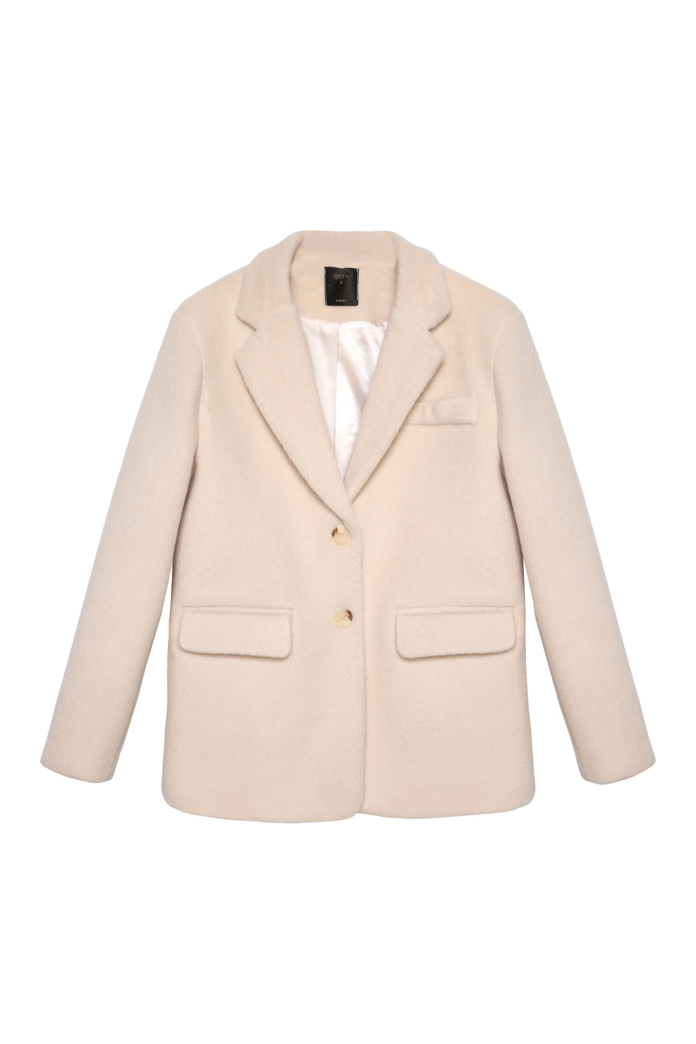 Kruvaze Yaka Kaşe Blazer Ceket Ekru