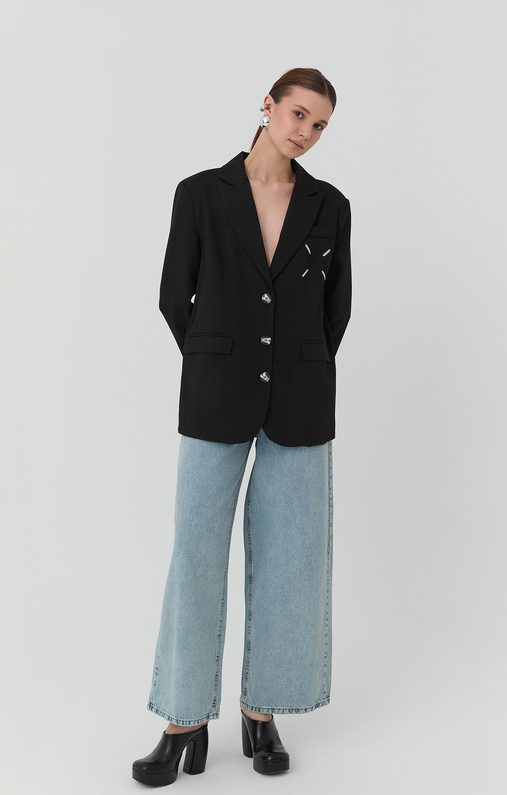 Dikiş Detaylı Oversize Blazer Ceket Siyah