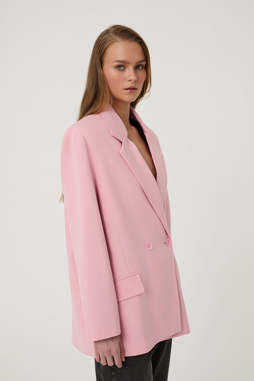 Kruvaze Yaka Oversize Blazer Ceket Pembe