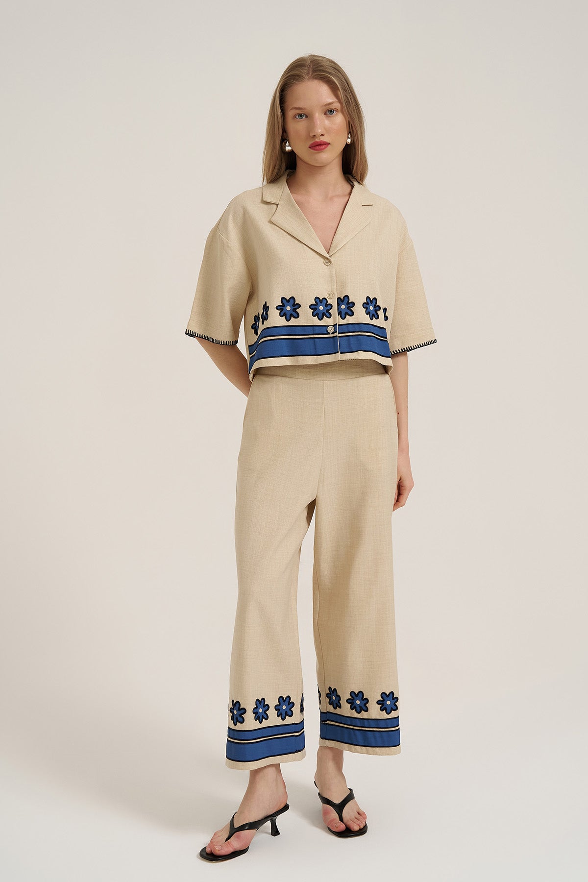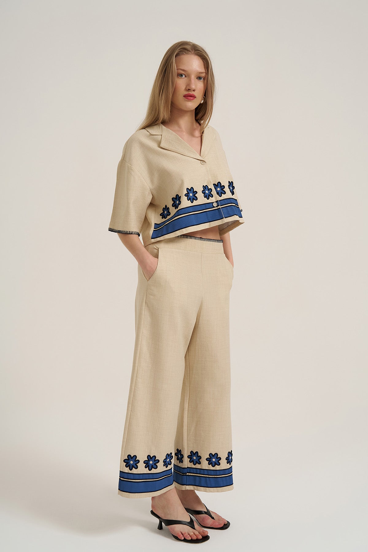 Nakış detaylı, iç astarlı, cepli pantolon.