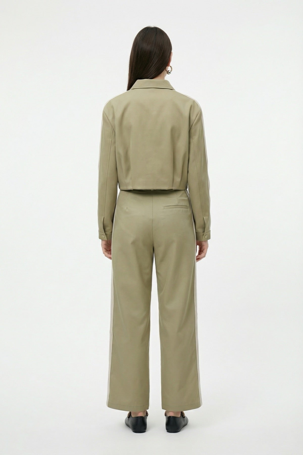 Ön Pileli Şeritli Bol Paça Pantolon Haki